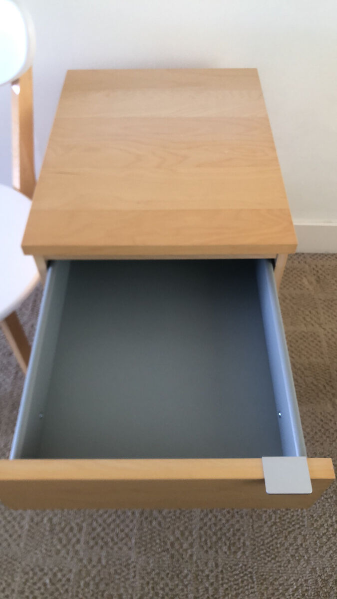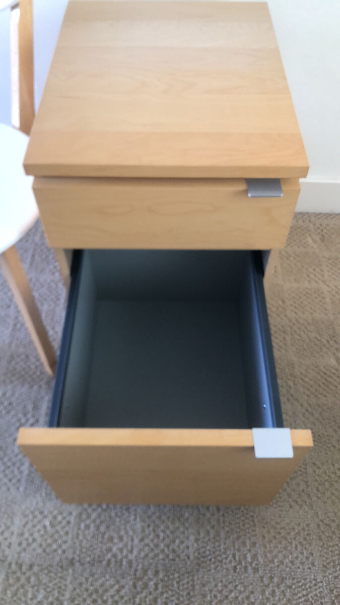 VenmoBoth chair and table are in xcellent condition, new. Table has wheels and is perfect for a side table for bedroom or next to a desk. lower drawer is sized for file storage. The chair is modern and comfortable.
