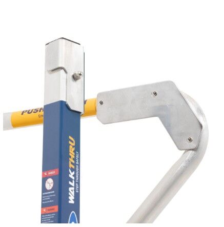 The Werner X300001 Extension Ladder WalkThru Gate accessory is designed to fit at the top of the handles of the Model X300000 Werner WalkThru. The gate closure is magnetic to stay secure and stay connected yet be able to open. This gate has a robust spring for continued use over and over.