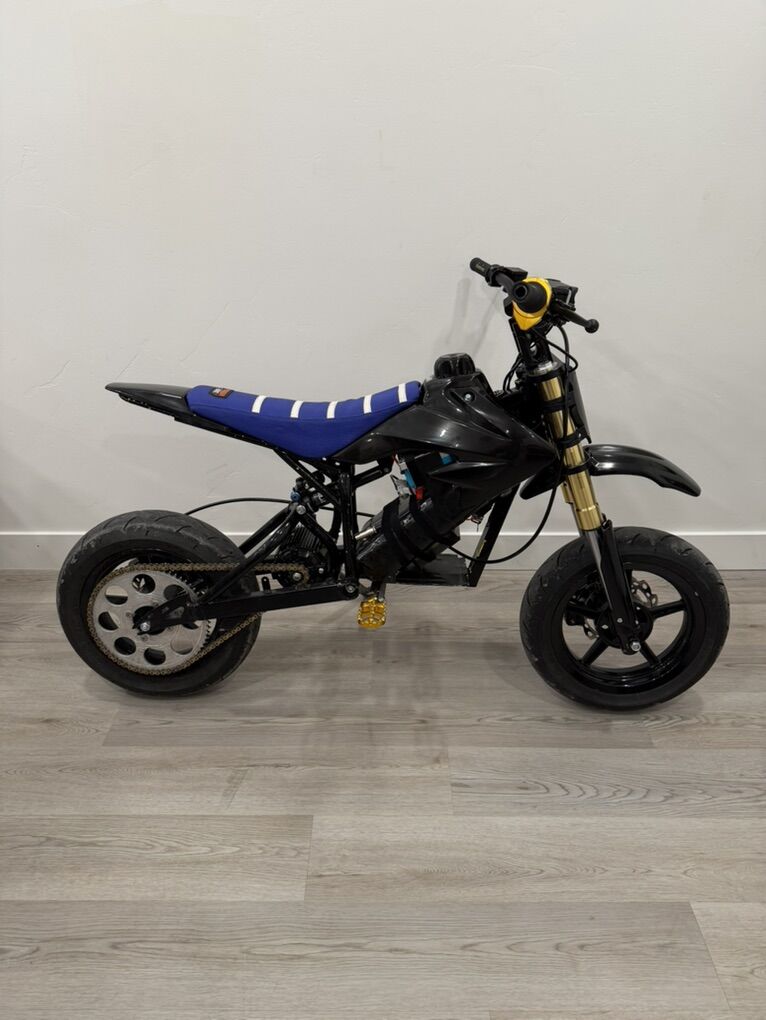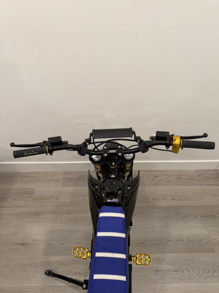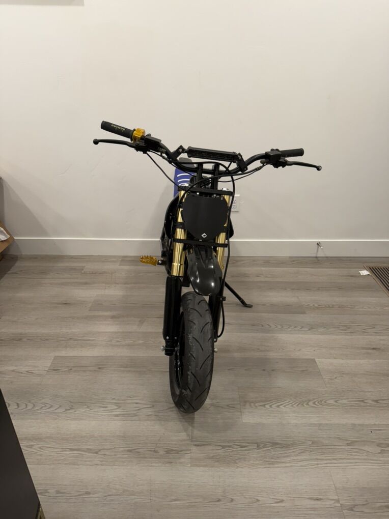 ApplePayI’ve built this Mx650 to be a Wheelie Monster. It’s on 72v with a 24ah battery. It’s got 12in Kenda Mag Wheels with a 420 chain. Midwest Mini Mods pit bike brakes with a KRV5 powering it. Motor was new as of November. Got a Fox DPX2 rear shock and PYMoto front forks. Geared perfect for wheelies and can pop the front wheel up at any speed. Can power wheelie as long as you want or get to balance point and wheelie wherever you want. It’s a great bike to learn wheelies on too. I’ve got nearly $3,000 into it. Just looking to fund the next project. I’ll be putting a 3 speed switch, key switch, and volt meter on the handle bars as well and can switch out the blue seat for a black if you want.