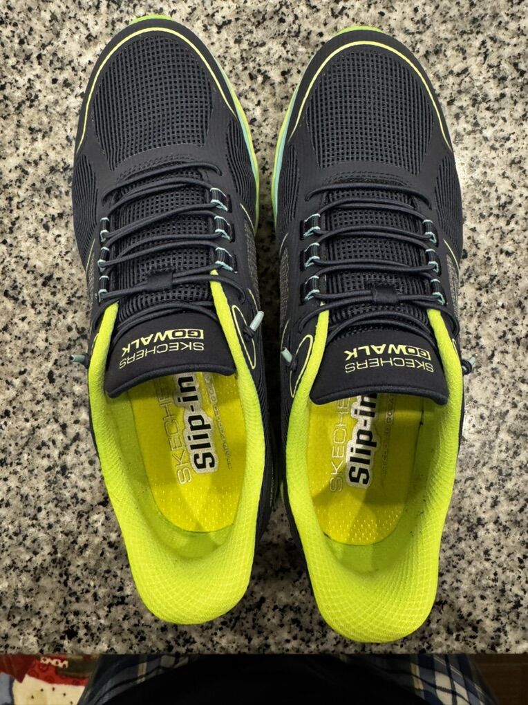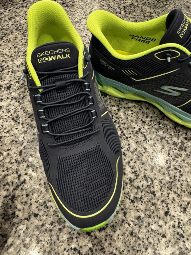 ApplePaySkechers Go Walk brand women’s shoes size 9. Hands-free slip in. Blue, dusky blue and neon green in color Only worn a handful of times, then realized the shoes were too big for my feet . Very comfortable cushioning. Extra set of shoelaces included, to change to shoes that you can tie. Still in like new condition. no rips, stains, or tears. Smoke free home. Porch pick up or willing to meet depending on distance.