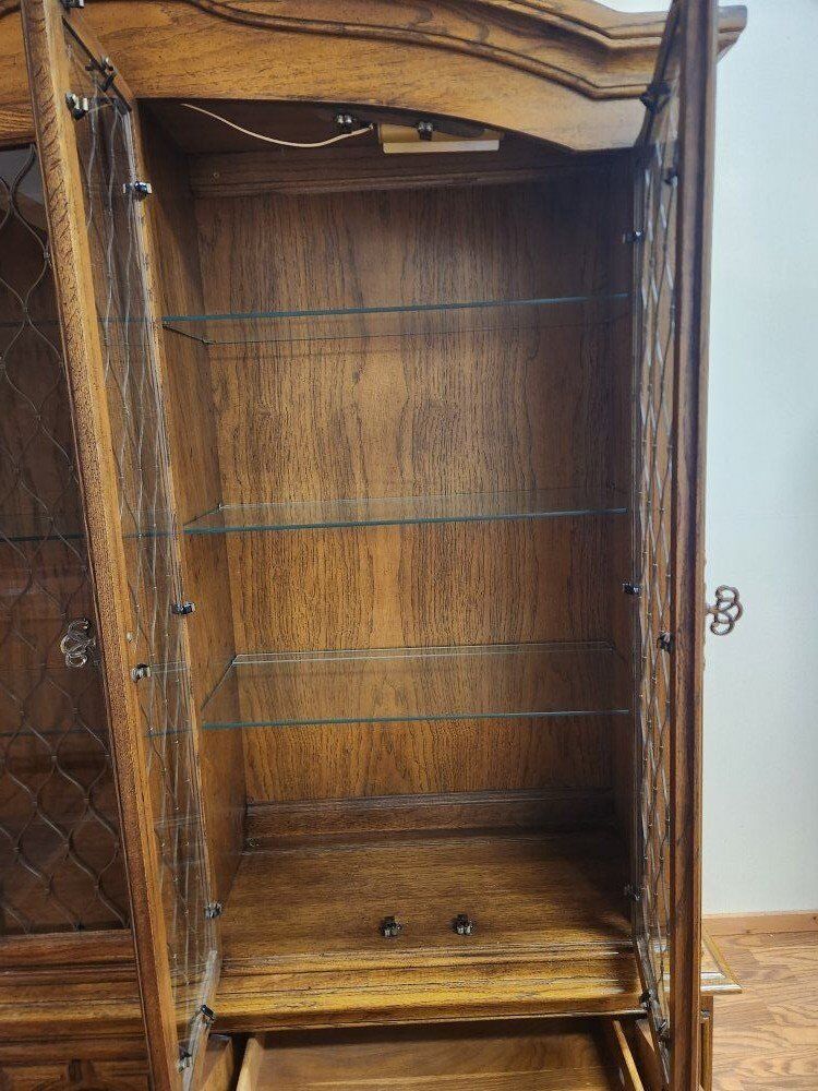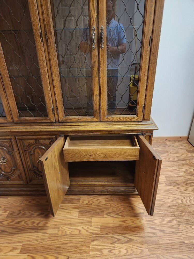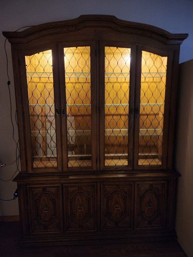 The hutch is well built and in good condition. The lights work. The top and bottom are separate pieces. I can help load it (though I can't do it alone). This piece is located in Leeds, up at the Silver Reef Museum.