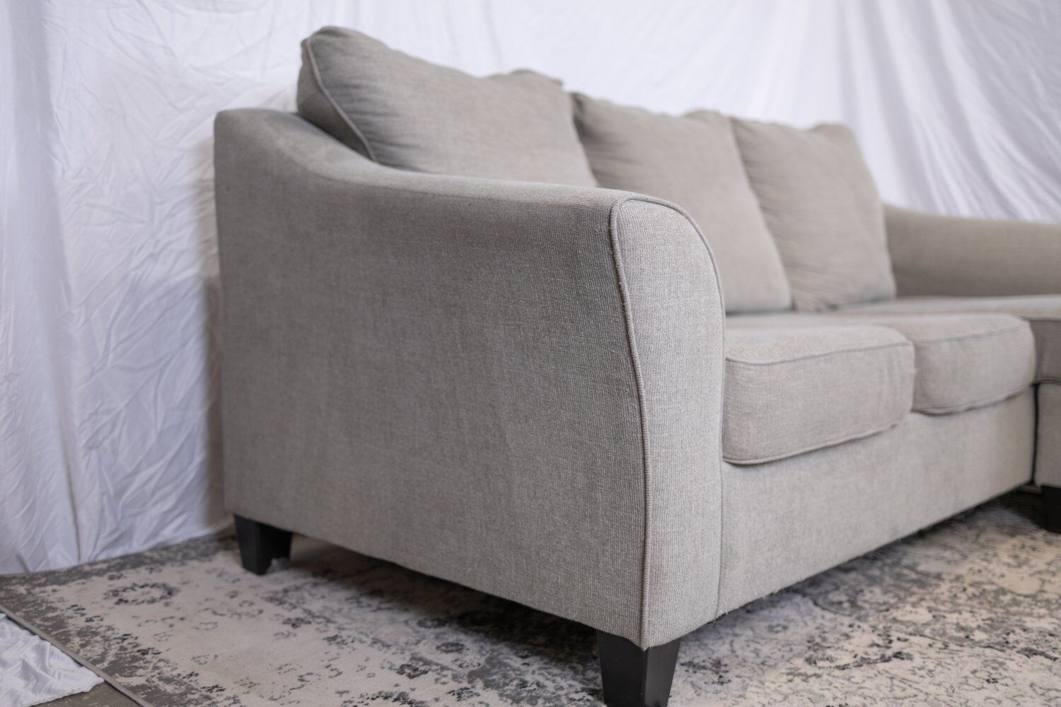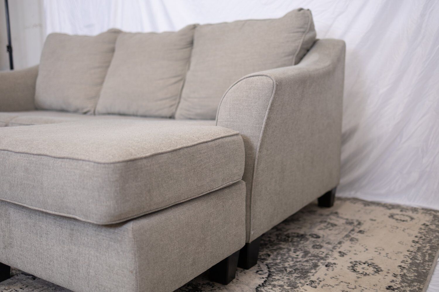 Save hundreds on this Ashley Abney Sofa Chaise. Retails for over $750 new. This is the "Driftwood" model which is a beautiful textured fabric in a warm neutral tone.