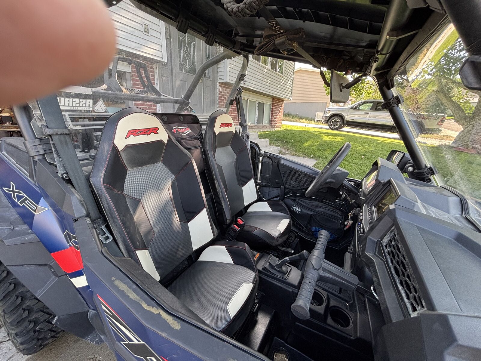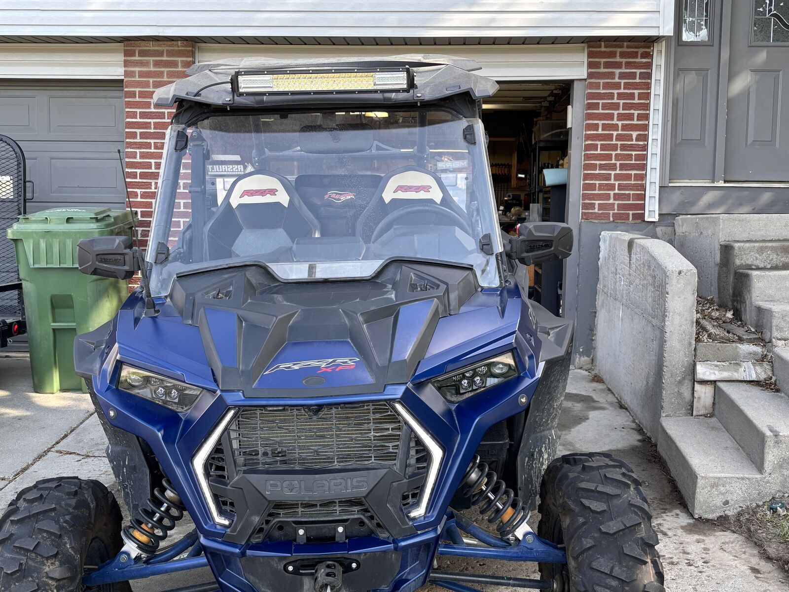 This RZR is in excellent condition low miles. Has winch with remote,p front and back wind shields, spare tire rack and a spare tire, poly roof, light bar mounted on roof, fire ext, street legal, horn, turn signals, license plate mount,
