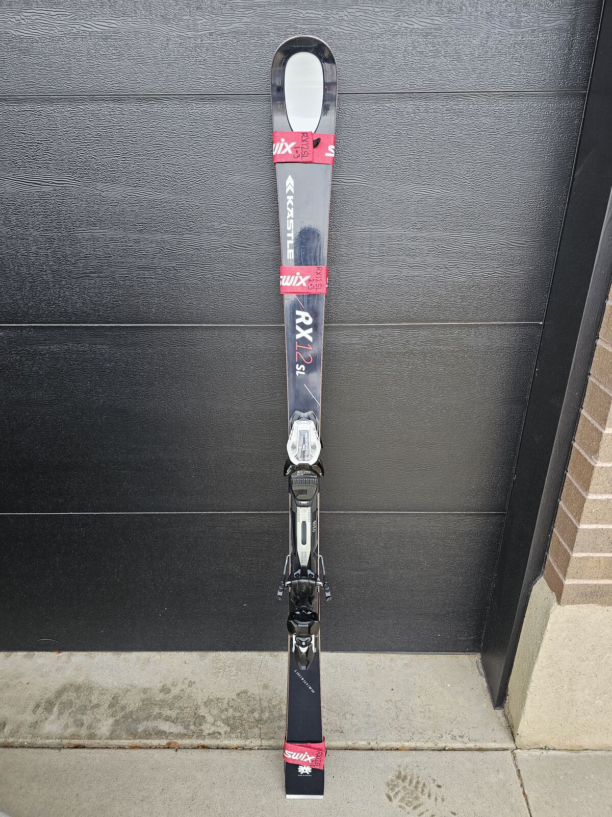 For sale is a pair of Kastle RX12 SL that offer a 12.5 meter turn radius at 165cm in length. These include the adjustable Kastle (Tyrolia) K12 CTI 4-12 DIN ski binding.