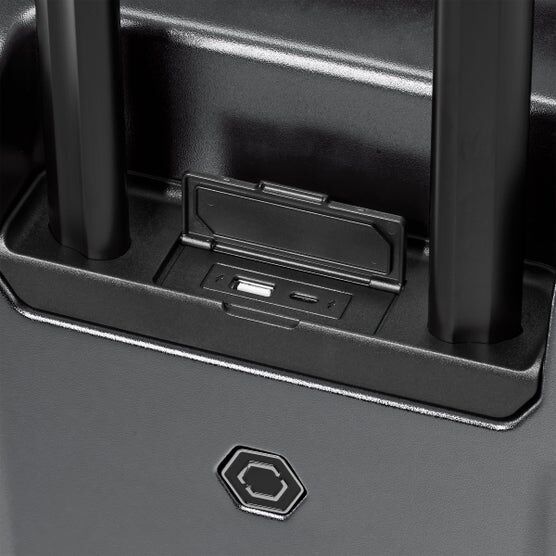 Solgaard Large Carry-On 22” is engineered to have a built in closet while you travel. Built from a Polycarbonate shell with an aluminum frame. Has a TSA approved three digit lock.