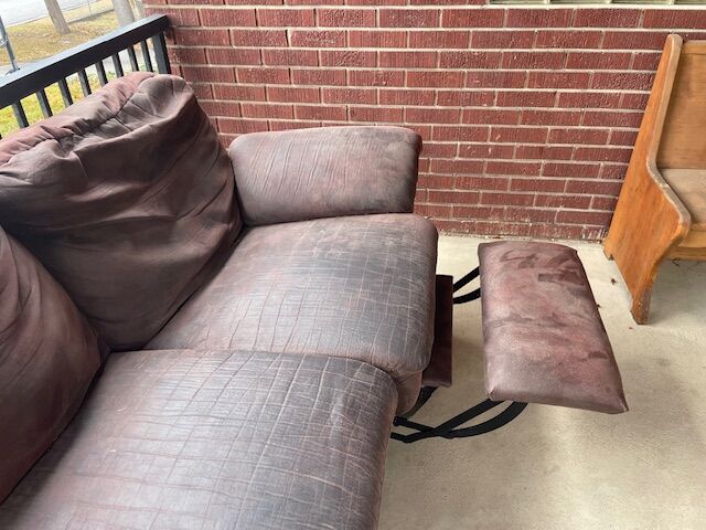 Clean couch with soft microfiber/suede cover. Comfortable. Both ends open up into recliners. 90 inches long, 36 inches from floor to top of headrest, 40 inches deep. Clean, average wear and tear. No holes rips or stains.