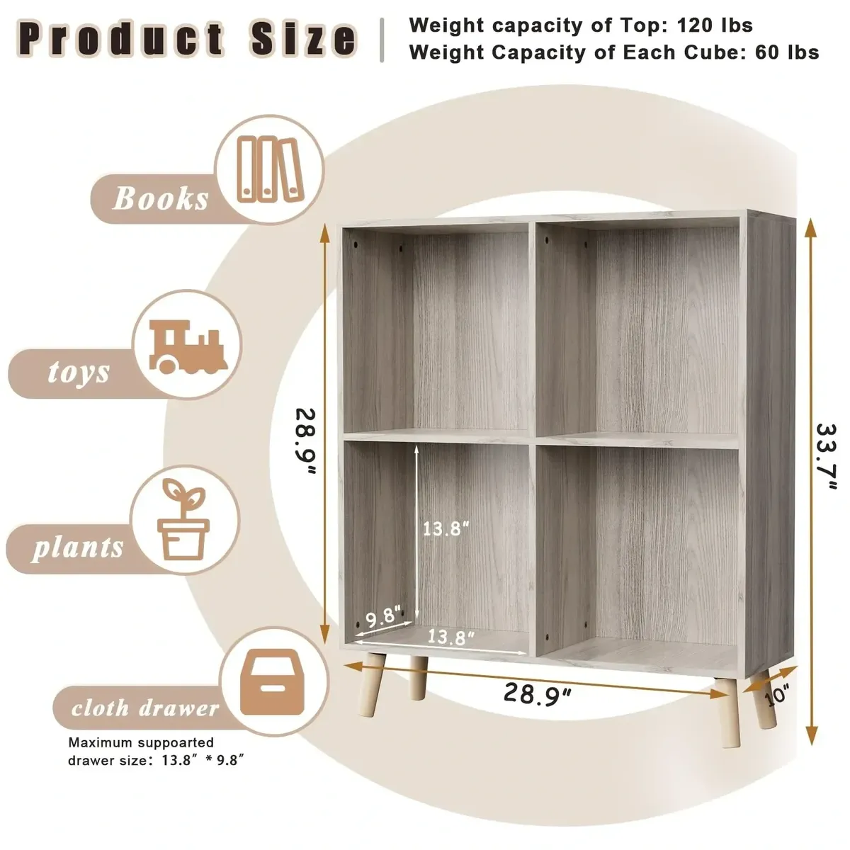 Add style and storage to any room with the Lkeiyay Wooden 4 Cube Open Bookcase. This 2-tier bookshelf features four open cubbies perfect for books, décor, or baskets. Made from durable engineered wood in a warm Rustic Brown finish with solid wood tapered legs, it brings a modern mid-century vibe to your living room, bedroom, or office. Practical, space-saving, and stylish—perfect for keeping your space organized.