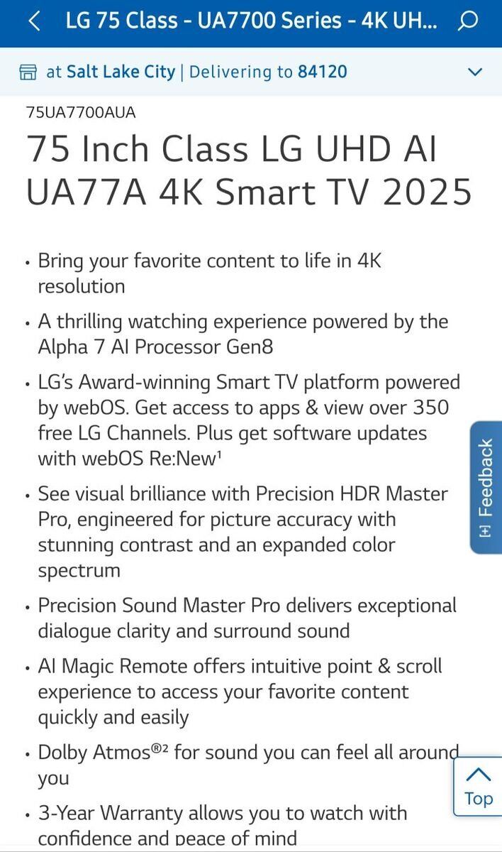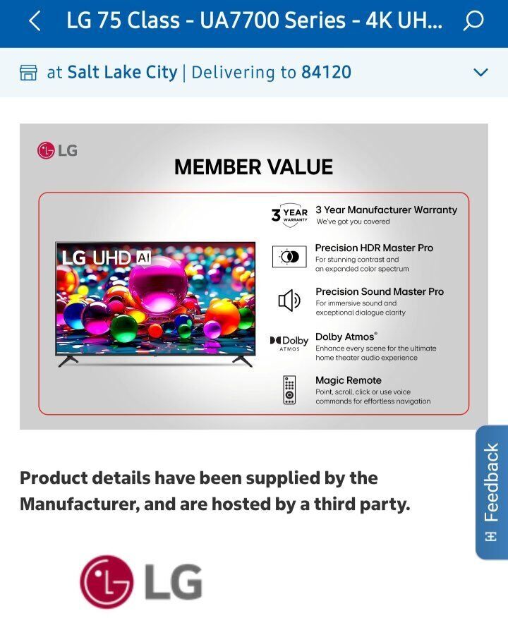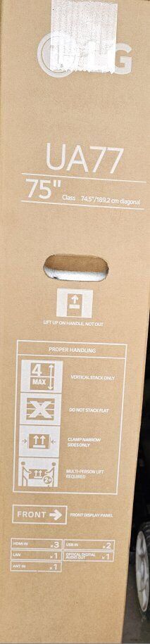Zelleunopened box, new 75" LG Smart TV... was a gift but looking for something else... see pics...