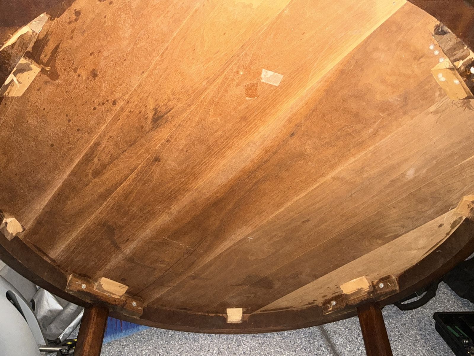ZelleThis is a sold wood, very well constructed coffee table. Has a few small scratches as seen in the pictures, but still looks good and is well made.