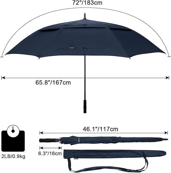 Brand Name... Prospo. Large 72 inch Umbrella Golf Umbrella, windproof. Automatic open, with Double Canopy. (Navy Blue)