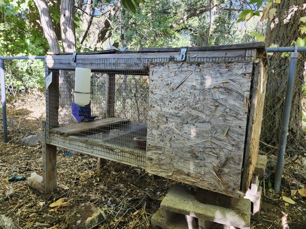 VenmoUsed rabbit hutch with a very sturdy main frame. The back legs fell off, but could be reattached with screws. There is a small hole in the wire( which is covered by a peice of wood)( rabbit not included)