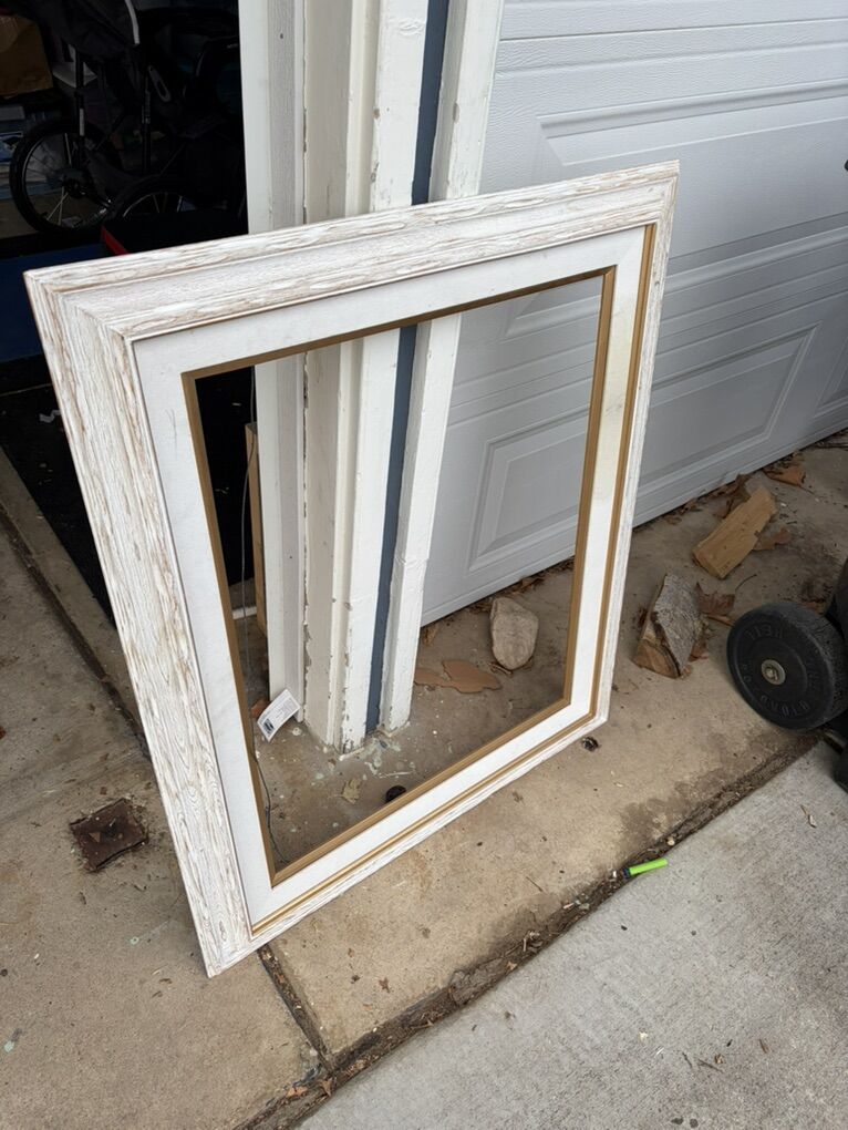 VenmoBeautiful white wooden frame with matting. 24x30 inches with existing matting. Smaller stain on existing canvas matting. Could be removed for larger artwork. Hanging wire installed.
