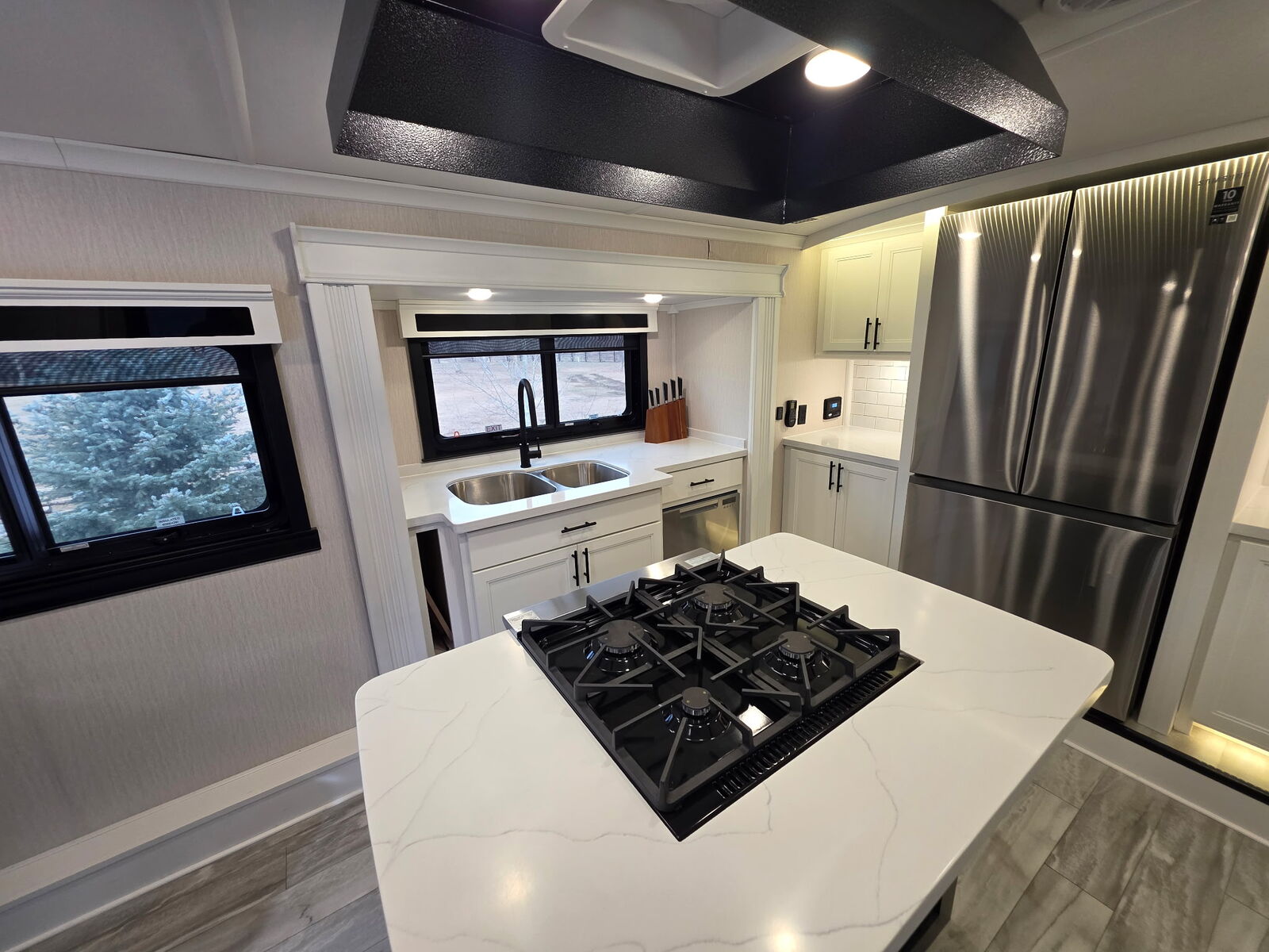 Upgraded Calcutta Solid Surface Countertop in kitchen