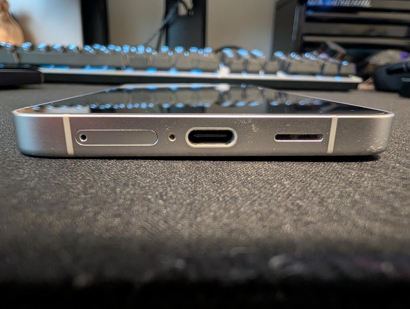 Device is fully functional. Battery health good. Minor scuffs around body of phone. Hairline scratch on screen, barely visible under screen protector. Chip to corner that does not affect performance and appears to be cosmetic. Only other scratches are on screen protector.
