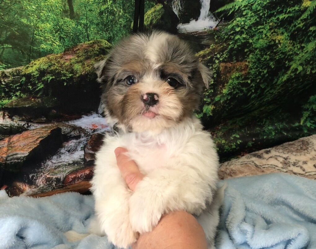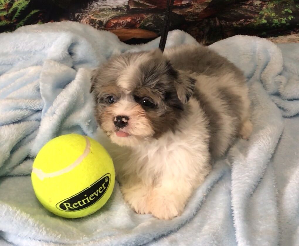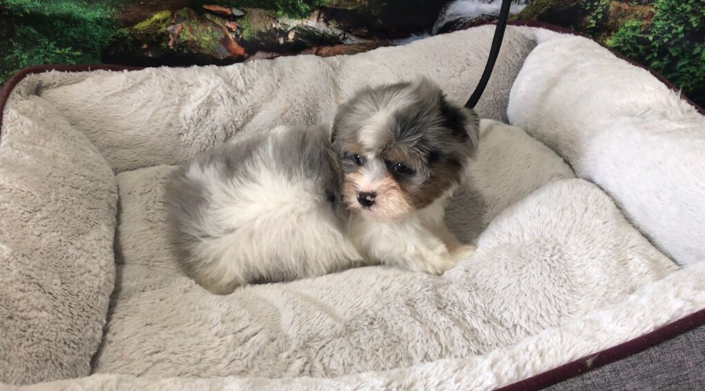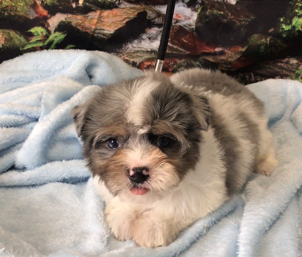 NO BREEDING RIGHTS. -Offered as pet only; to be spoiled, pampered, loved. -Tofu loves to explore. His whole personality is about fun. He makes good eye contact, and smiles when I talk to him. -Tofu is a Blue Merle Parti Yorkshire Terrier with Tan Markings and Merle eyes. He's gorgeous! -Merle refers to the unique marbling of Tofu's coat and eye color. Just like natural marble stone is unique, Tofu's coloring is unique. He is the only puppy who will ever look like him. -Tofu's mom is an elegant 5 lb Blue & Gold Parti Yorkshire Terrier with the most loving temperament. His daddy is a Blue Merle Yorkshire Terrier who loves to play. -Tofu is currently charting to be only 8 pounds when he's all grown up. That's about the size of a new born baby. He will be small enough to snuggle on a lap, but safe enough for play time too. -Tofu was born December 16th, and is eating solid food. He has had his first vaccines and is completely de-wormed. His vaccination and de-worming record will be provided along with a sample of his food. -Tofu is offered as a pet only with no breeding papers. -A $500 non-refundable deposit will hold him for you. Cash only. -Please call if you have any questions or would like to meet him. I prefer calls instead of text. (801)854-8401