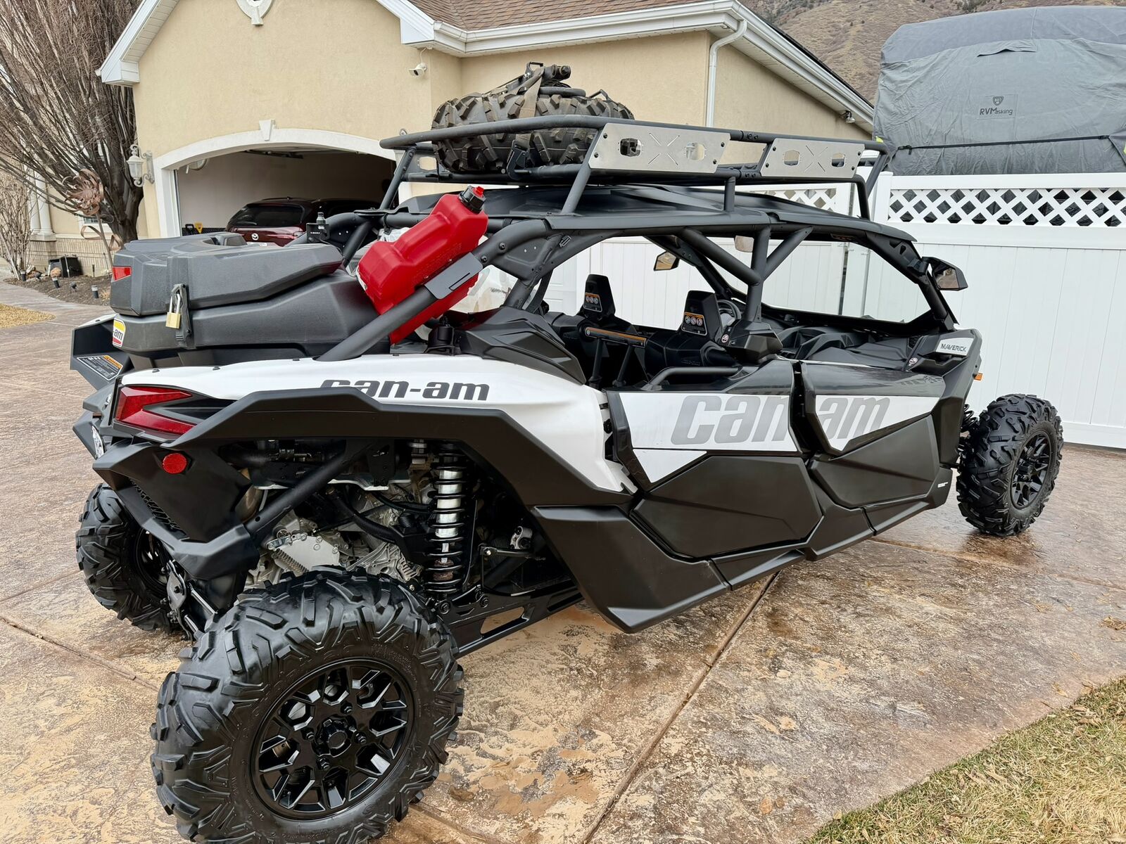Extremely low mileage Can-Am Mavic X3 Max (865 miles) in excellent condition. Street-legal. Never been rolled, barely used. Hard top with rack on top, lower doors, trunk, and spare tire. Multi-color LED programmable whip. Pull-out shade from top rack and glass windshield with wiper.