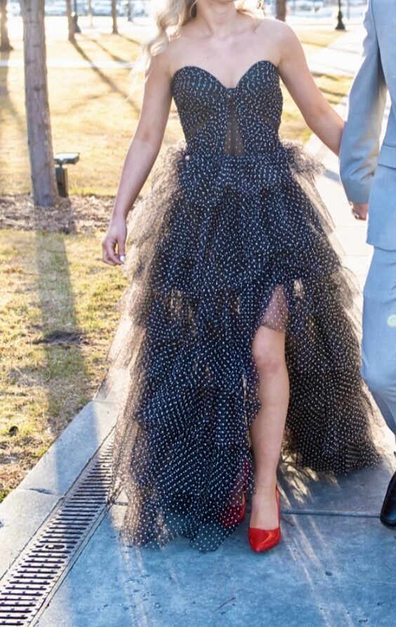 VenmoThis dress is amazing, black tulle with white polka dots. Wore once Size 4 Paid $300.00 at Bliss