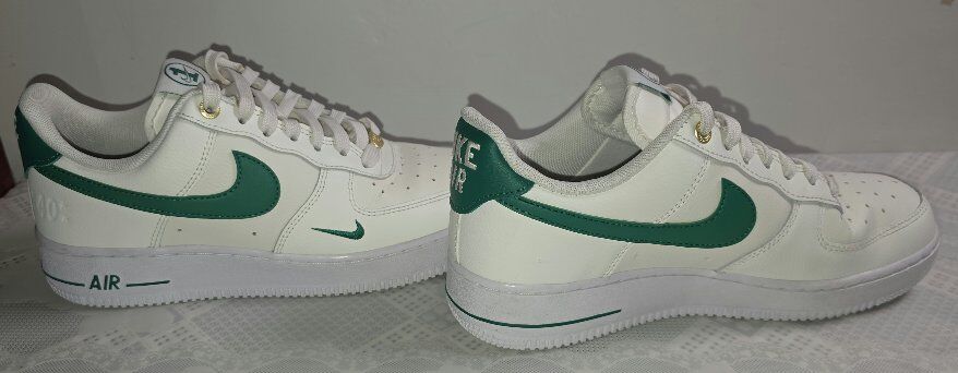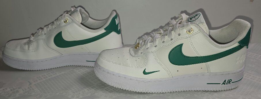 Pre-Pre-Owned Nike Air Force 1 '07 SE ‘Malachite’ Shoes DQ7582-101, Size 8 Womens and Men’s 6.5. Nearing half a century since Bruce Kilgore designed a monumental piece of sneaker history, Nike celebrates 40 years of a legendary silhouette! Designed for performance, the Nike Air cushion unit combined with breathable perforations, a soft foam midsole, and supportive padded collars provide you with an unmatchable comfort. With 40th embossed into the heel and colorways reminiscent of retro basketball, time will never be an obstacle on your path. See all photos, text message is better, see my other adds, thank you.