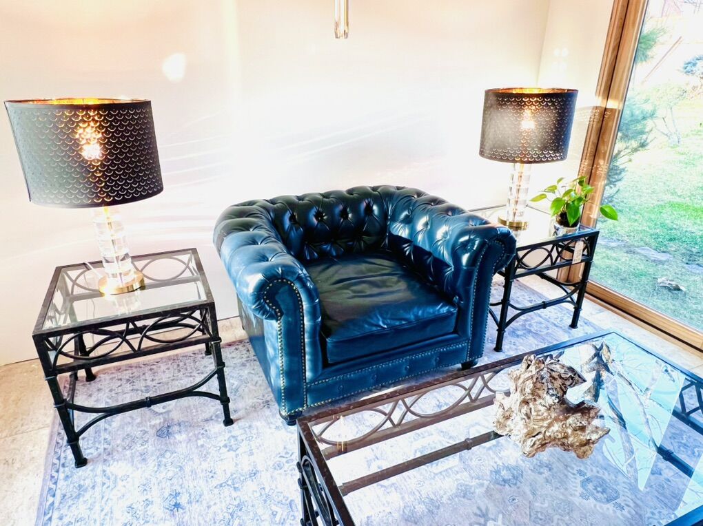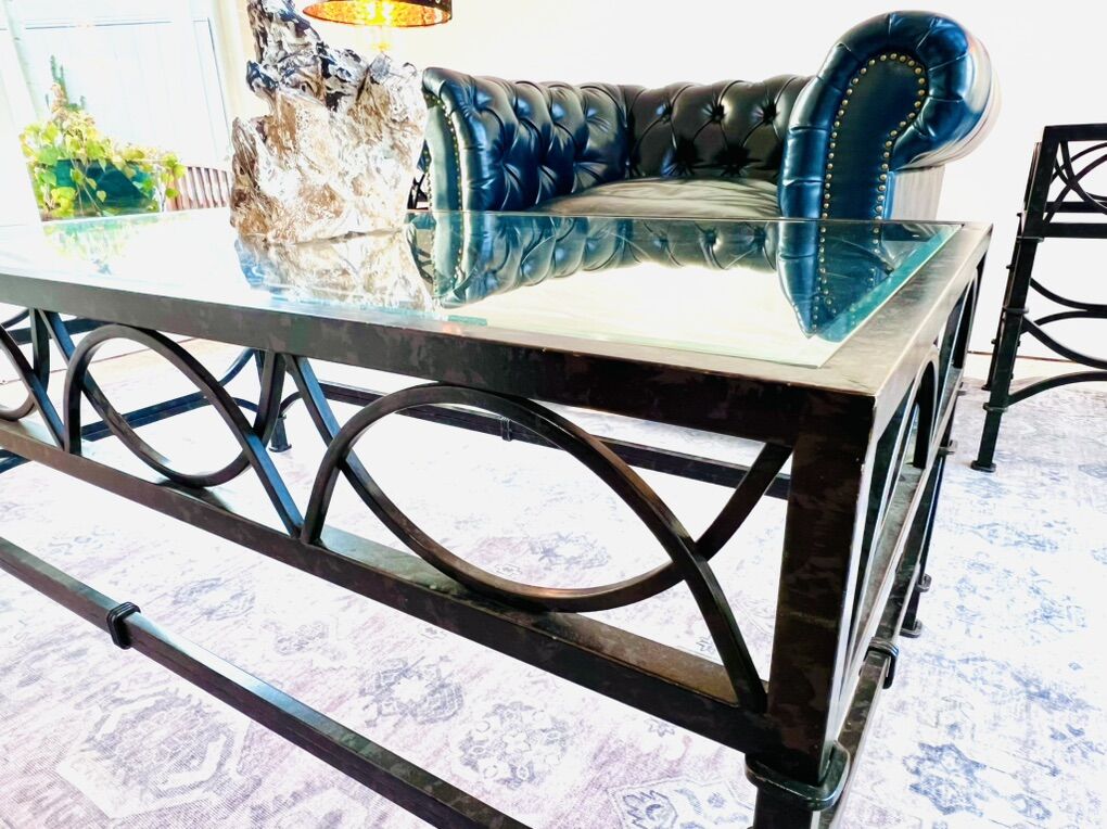 VenmoElevate your living space with this gorgeous coffee and end table set featuring sophisticated geometric metal frames and sleek glass tops! DIMENSIONS: • Coffee Table: 50”L x 26”D x 20”H • End Tables (2): 24”W x 24”L x 24”H FEATURES: • Beautiful black metal frames with intricate interlocking scroll/geometric design • Clear tempered glass tops for an elegant, airy look • Sturdy construction with decorative detailing • Perfect for traditional, transitional, or glam décor styles • Complements any furniture style and color scheme CONDITION: Great condition! Well-maintained and ready for its new home.