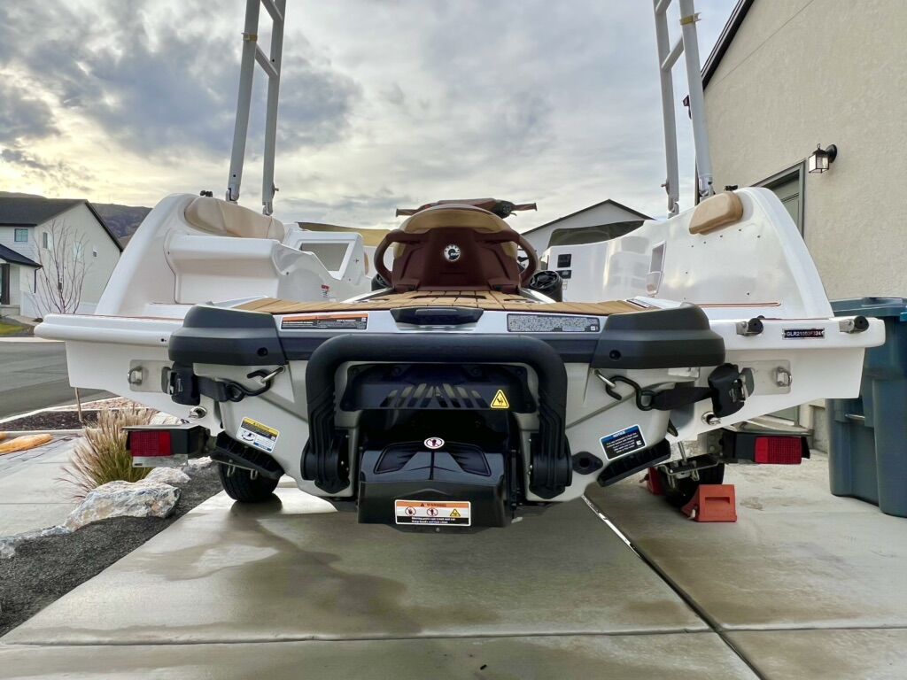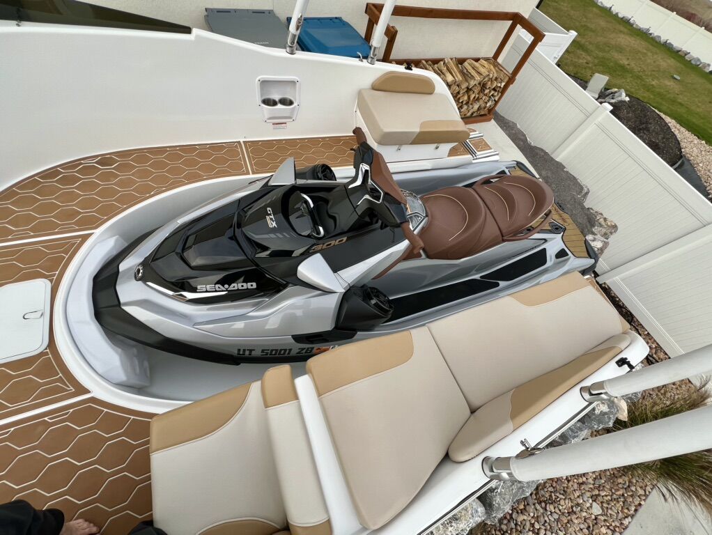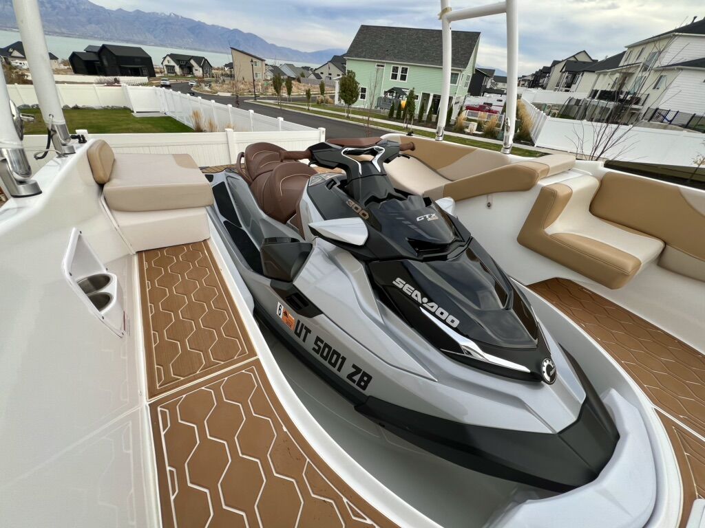 Super unique and flexible boat that uses a Seadoo PWC (2019 GTX 300 with 7 hours included in sale) with either the ST3 hull (GTX, RXT, RXT-X, Wake Pro, Fish Pro) or T3R hull (RXP-X) as a propulsion unit. Lightly used demo unit with only 20 hours and huge savings (MSRP $48,000 for boat alone). Vessel has only been in fresh water.