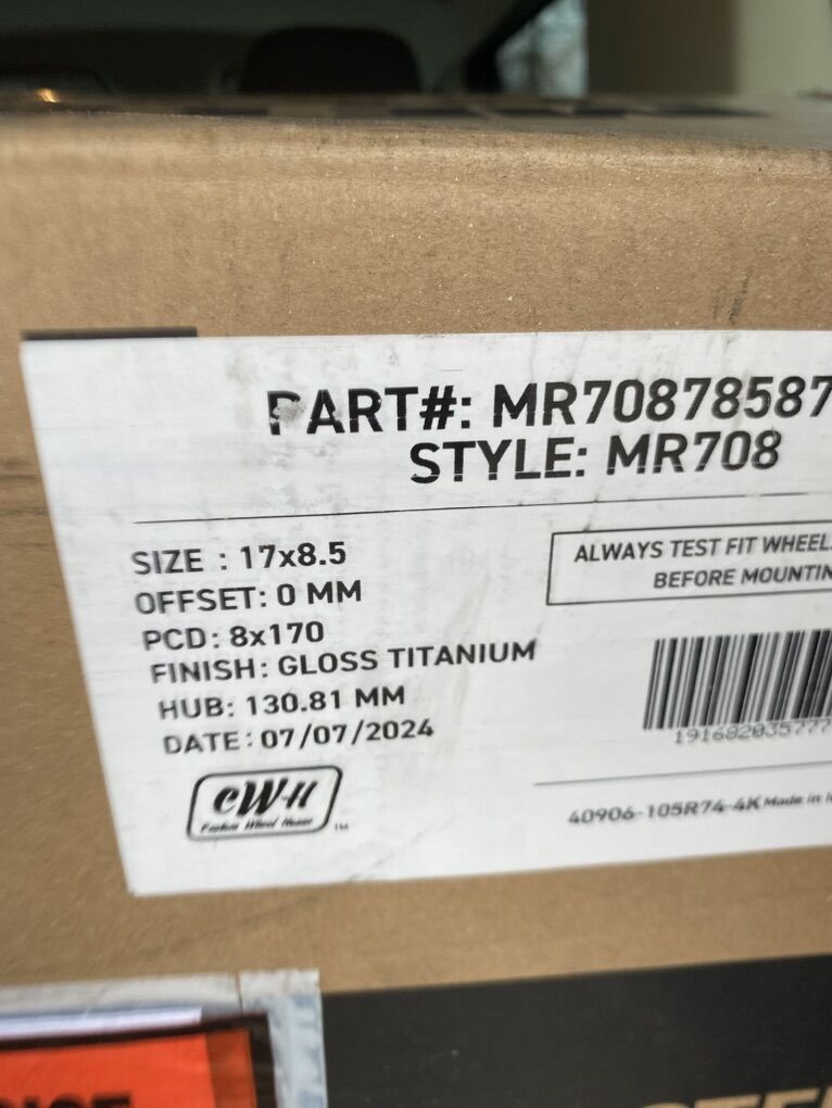 Selling some Method Bead grip off road wheels. 8x170 bolt patter to fit Ford f250, f350. 17x8.5 size, 0 offset. I put ford axles under a Toyota tundra and bought these wheels to run on them, but I’m going a different direction. These were 1400 new, never driven on.