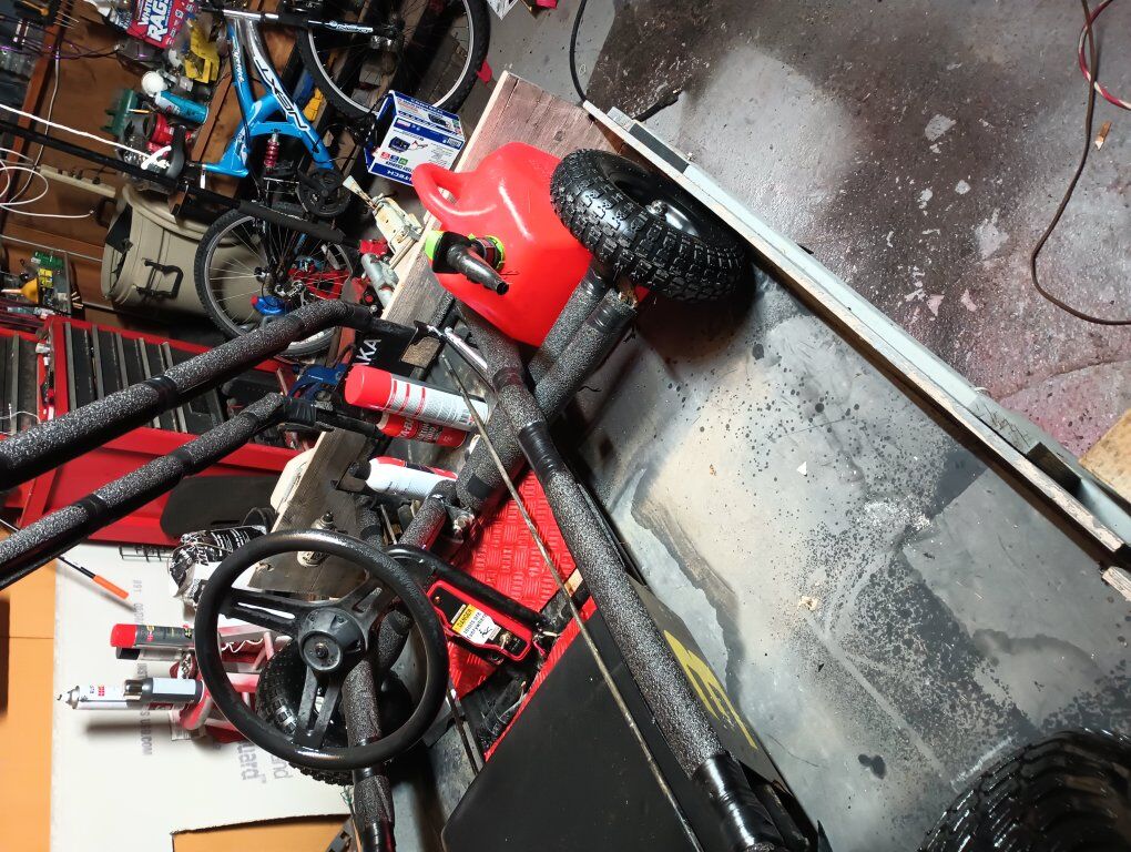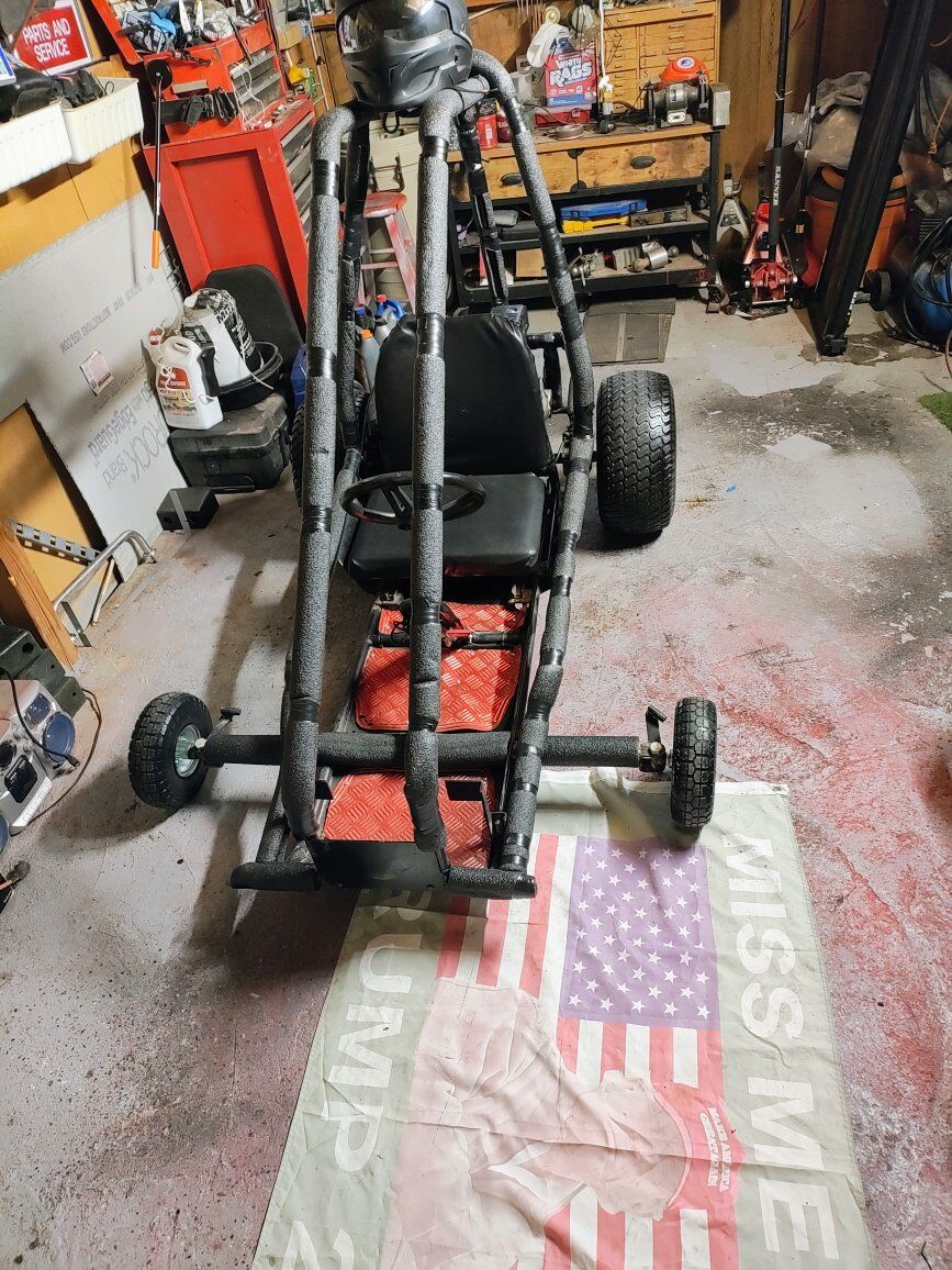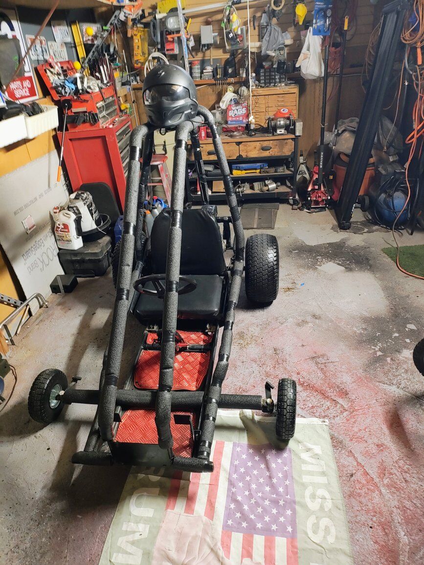 rebuilt with new motor new tires new carburetor comes with additional brand new motor and two larger tires for off road this kart comes with new helmet also many spare parts . will do 50 mph or better it's big enough for adults to ride . asking 800.00 , you can buy my trailer for $400.00 total with both 1200.00 there is no issues starts and runs very well . you can call or text anytime at 385 443 9110