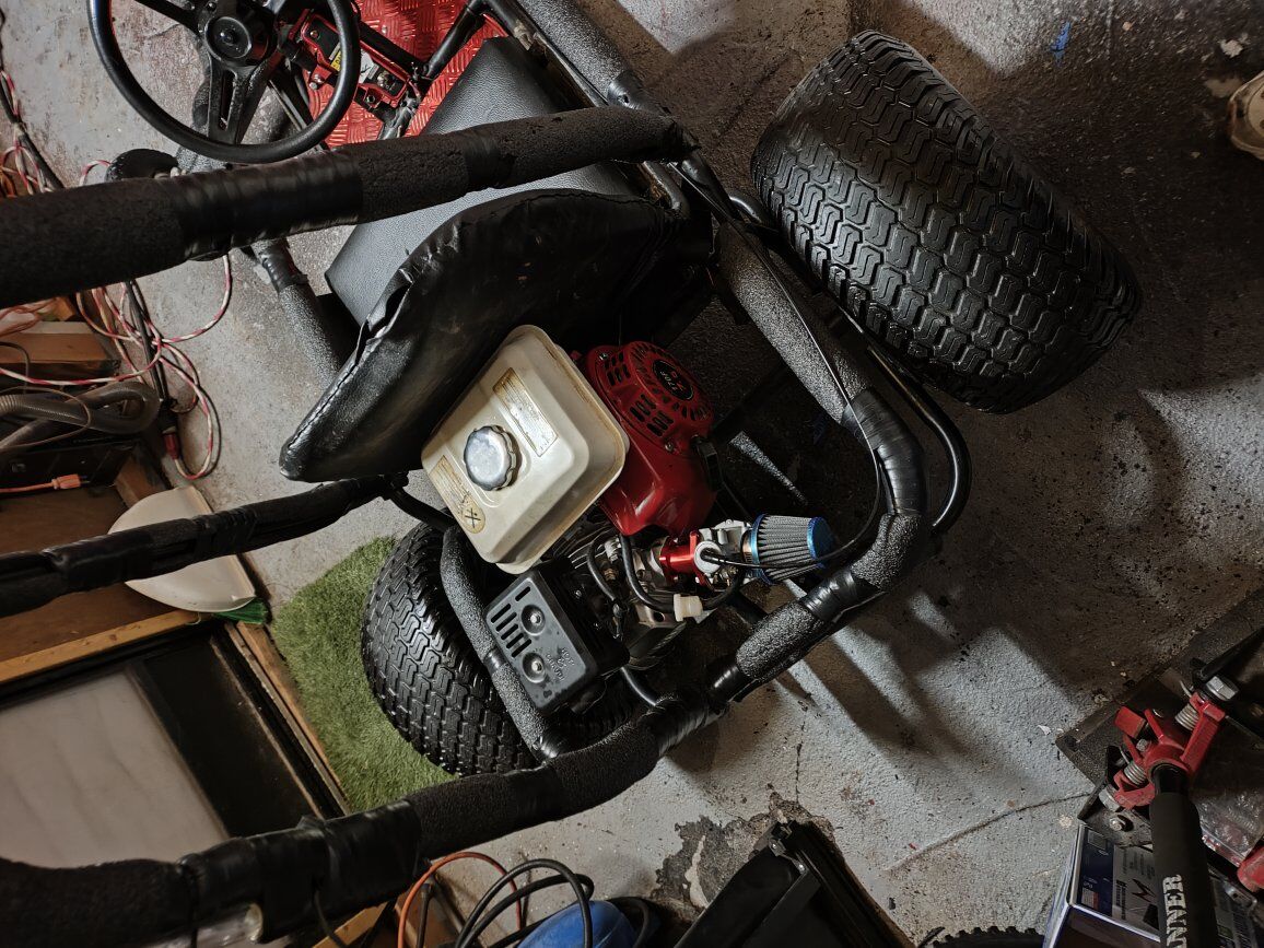 rebuilt with new motor new tires new carburetor comes with additional brand new motor and two larger tires for off road this kart comes with new helmet also many spare parts . will do 50 mph or better it's big enough for adults to ride . asking 800.00 , you can buy my trailer for $400.00 total with both 1200.00 there is no issues starts and runs very well . you can call or text anytime at 385 443 9110