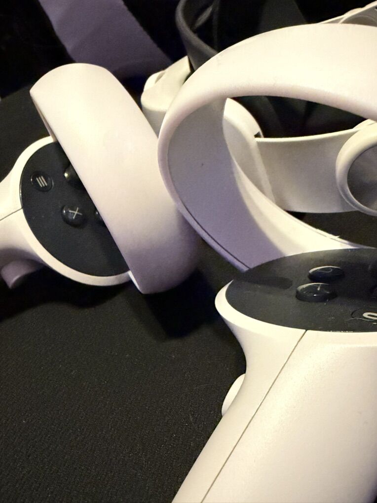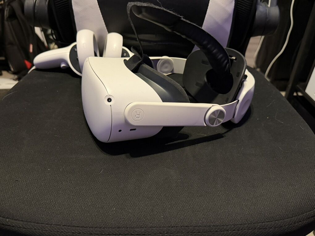 Works great needs a new head frame it’s cracked 20$ for a new one on Amazon, right controller halo is cracked on the side of it, is nail glued to stay other than that the controllers work like brand new, console is factory rested and updated. Has a new head strap for it.