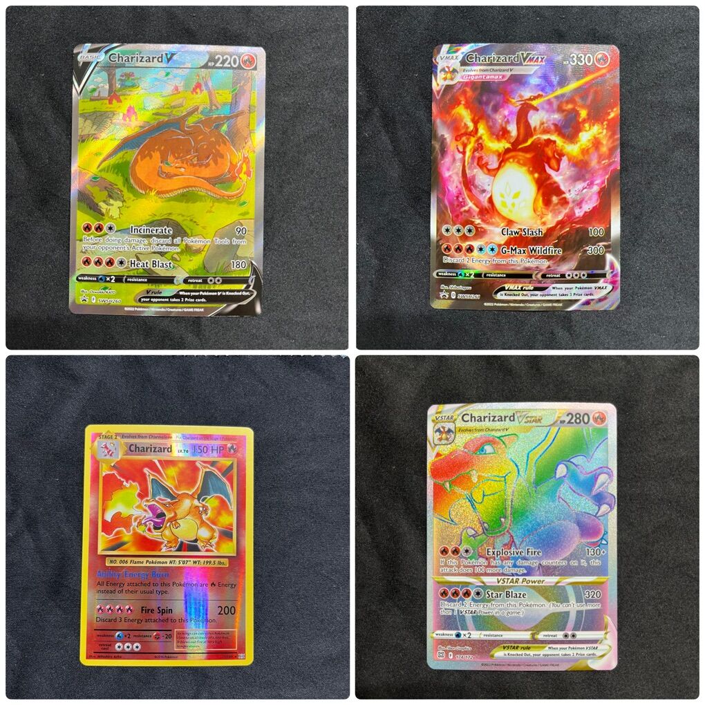 ApplePayCharizard V Star 174/172 $60 Charizard Reverse Holo 11/108 $60 Charizard V Star Promo SWSH262 $60 Charizard EX 13/108 $45 Charizard V Max Promo SWSH261 $40 Charizard EX 228/197 $35 Charizard V Promo SWSH260 $35 Charizard EX Promo 074 $20 Radiant Charizard 011/078 $15 Charizard Cracked Ice 014/181 $15 Charizard EX 12/108 $15 Charizard EX Japanese 331/190 $15 Charizard EX Promo 056 $15 Charizard EX 11 $15 Charizard V Star 018/172 $10 Charizard GX SM211 $10 Radiant Charizard 020/159 $10 Charizard V Promo SWSH050 $10 Charizard GX 9/68 $10 Charizard V (Lance’s) SWSH133 $10 Charizard EX 125/197 $5 Charizard Cracked Ice 025/185 $5 Charizard EX 006/165 $5 Charizard V 018/159 $5 Charizard V 019/189 $5 Charizard V Star Japanese 014/172 $5 Charizard Pokemon Go 010/078 $5 Charizard Reverse Holo 025/185 $5 Charizard Non Holo 025/185 $5