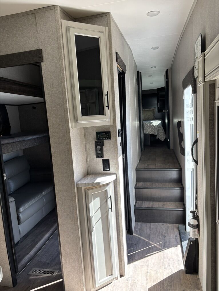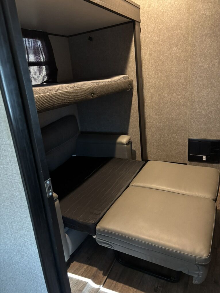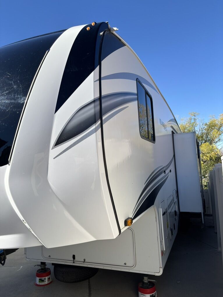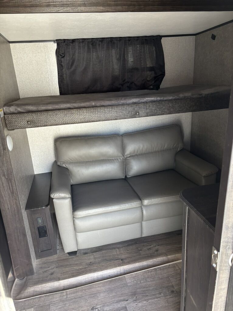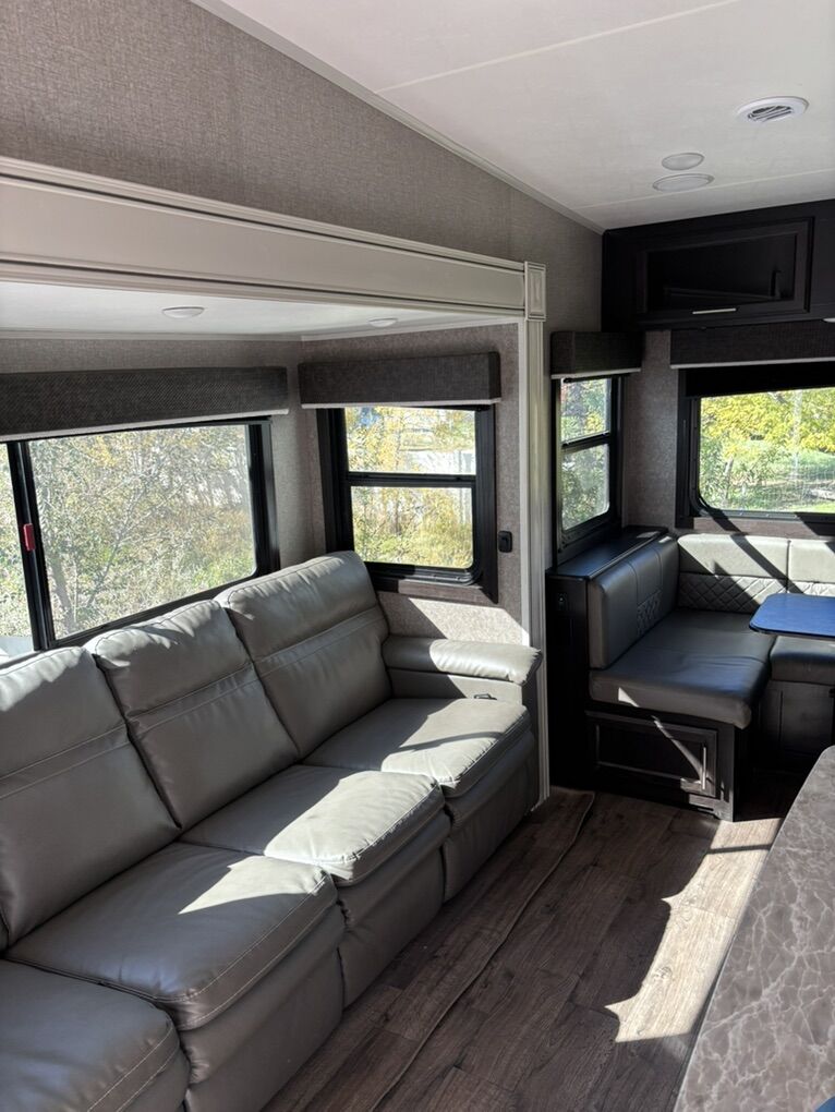 If your looking for a great fifth wheel with the luxury and the room to take the entire family In comfort Still small enough to to take into all the national parks at 37 ft 2 Auto leveling system Rear hitch Solar on roof Dual AC 3 tip outs Oversized large fridge and freezer Electric fireplace Private bunk bed room Large dinette in rear with windows for amazing views 4 seat couch with recliners If you have any questions I will be happy to answer them