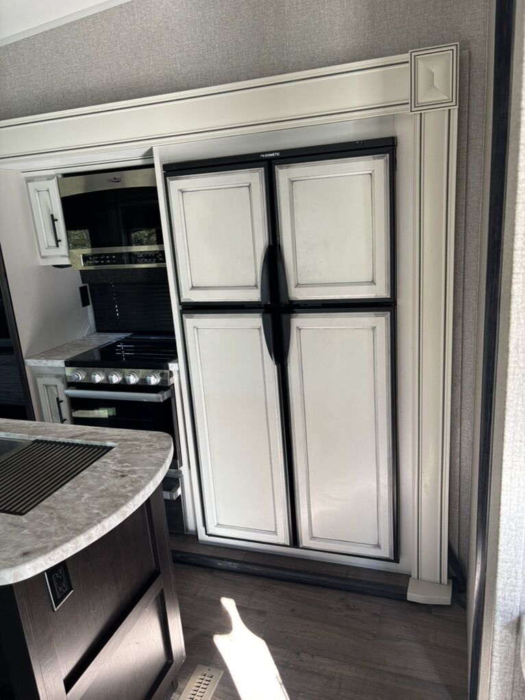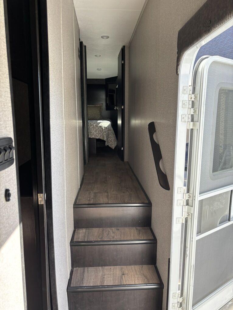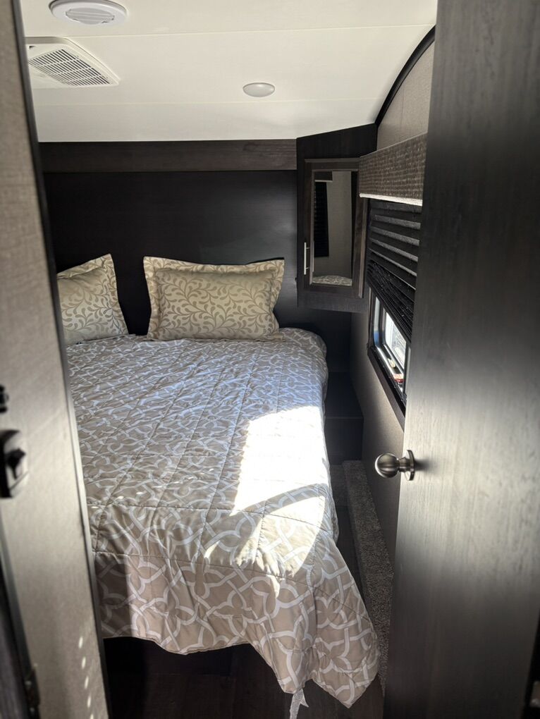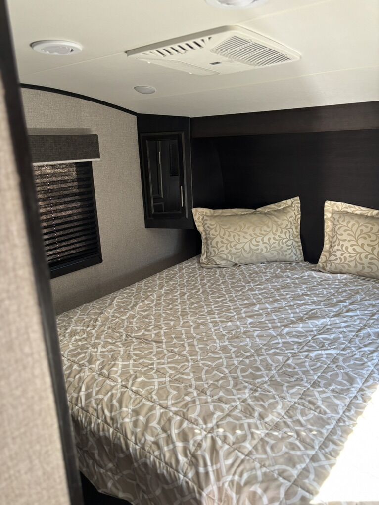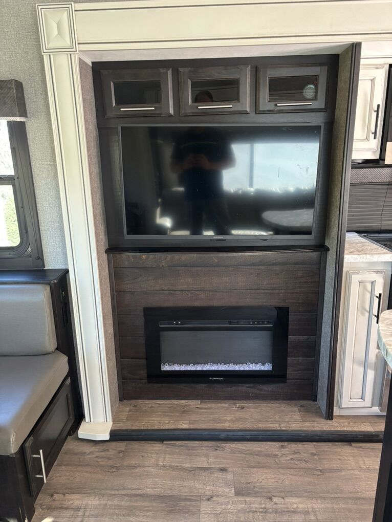 If your looking for a great fifth wheel with the luxury and the room to take the entire family In comfort Still small enough to to take into all the national parks at 37 ft 2 Auto leveling system Rear hitch Solar on roof Dual AC 3 tip outs Oversized large fridge and freezer Electric fireplace Private bunk bed room Large dinette in rear with windows for amazing views 4 seat couch with recliners If you have any questions I will be happy to answer them
