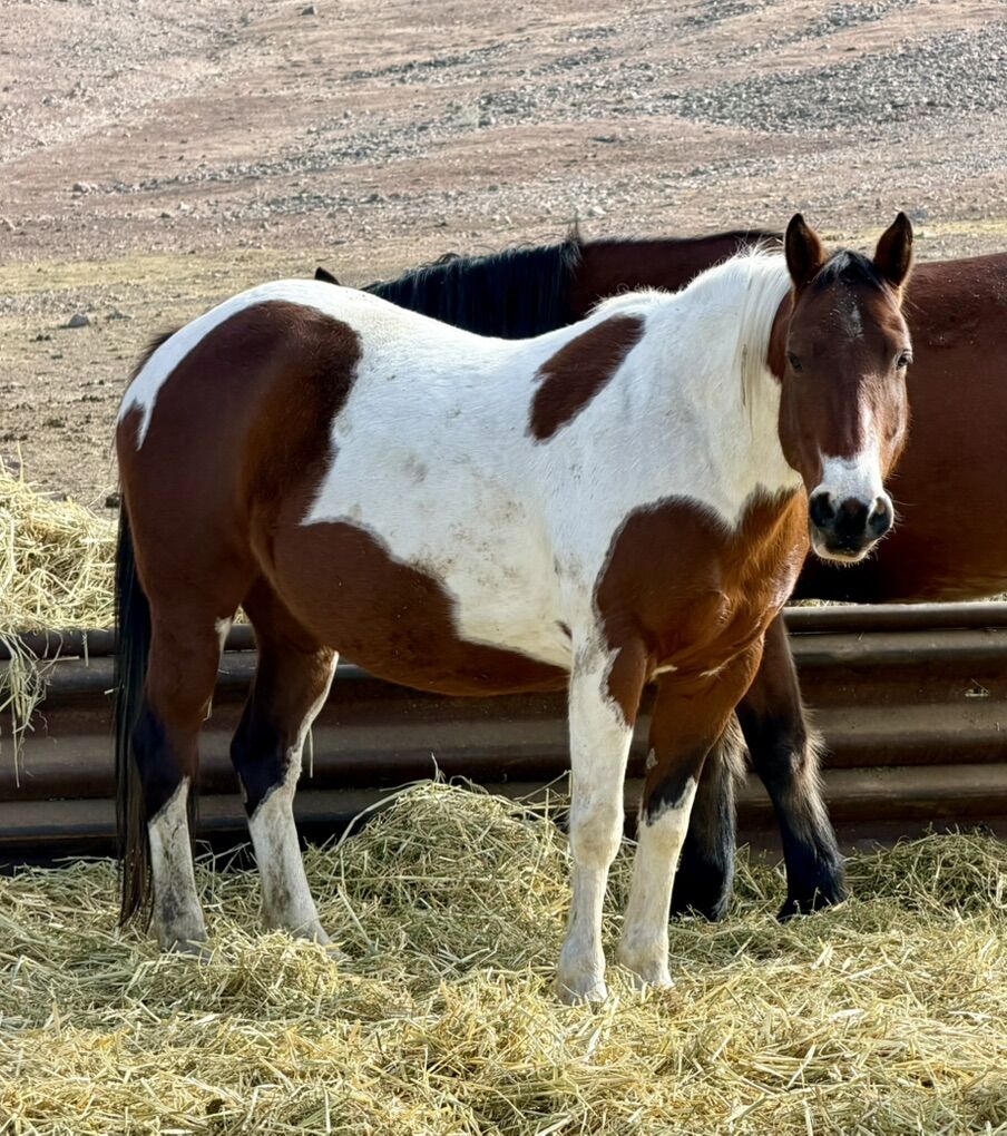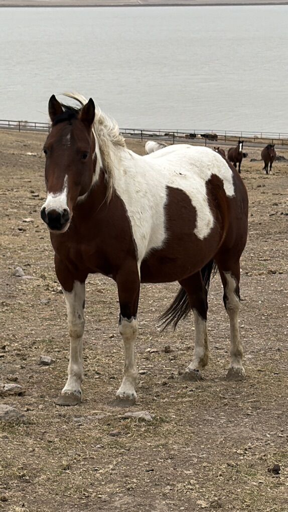 ZelleFour year old (coming 5) pretty paint mare! Stands around 15.2hh. She is halter broke and has had one baby - she is a good momma, we haven’t had the chance to do much more than that with her! We are slimming down the herd! She comes with a live foal guarantee. She is bred to a 1/2 draft stud (1/2 Percheron, 1/2 QH). She should foal the end of February beginning of March. She can foal out here and be bred back to the same stud for an additional fee! Great two for one package and the mare would be a great prospect! She comes from driftwood QH lines. Located in Genola!