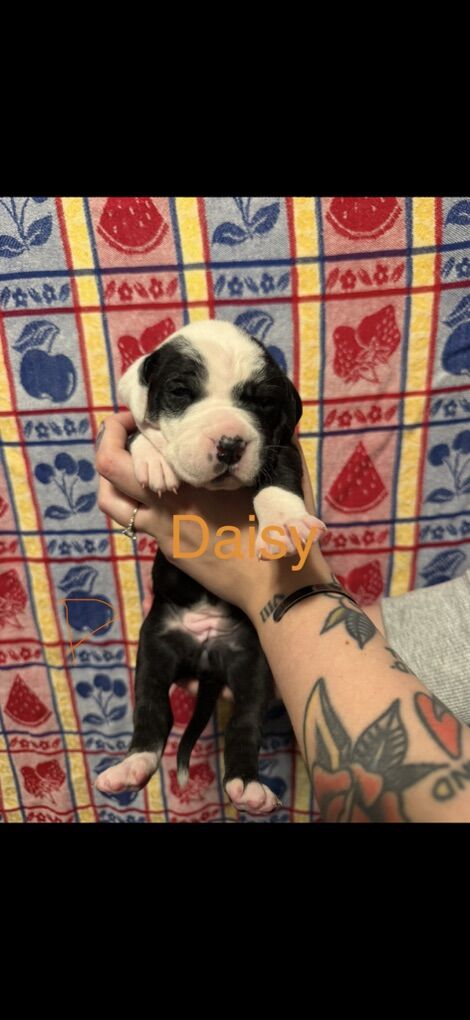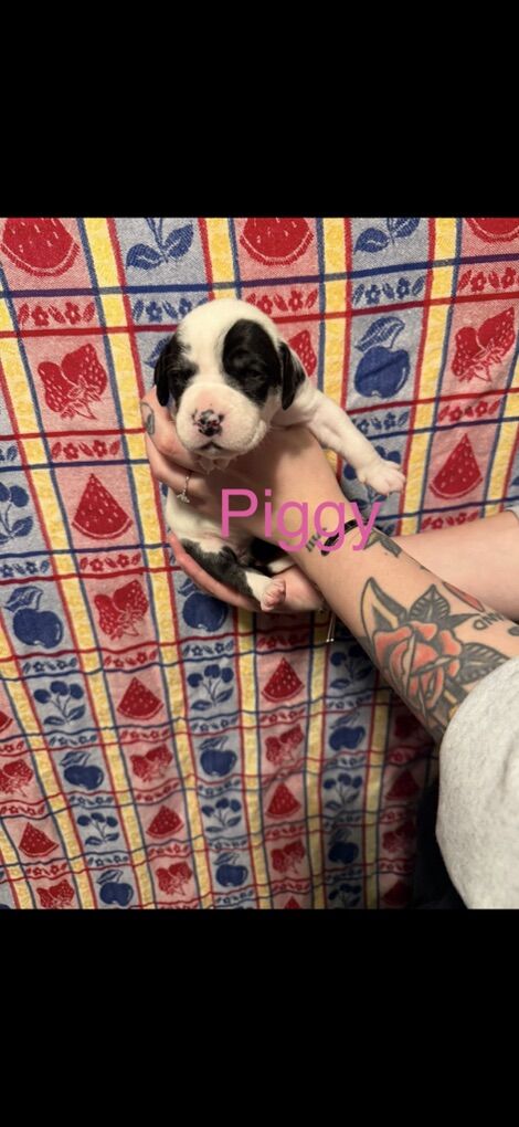 Mom is a bulldog/pointer and dad is a pure bred great dane. The pups were born on 1/22/26. They will be available for their new homes on 3/19. They will be receiving their first set of shots with us. You will be responsible for care afterward. There are 7 girls. We really want these pups to go to forever homes. Mom and dad are both well mannered good dogs! Pics of mom and dad included.