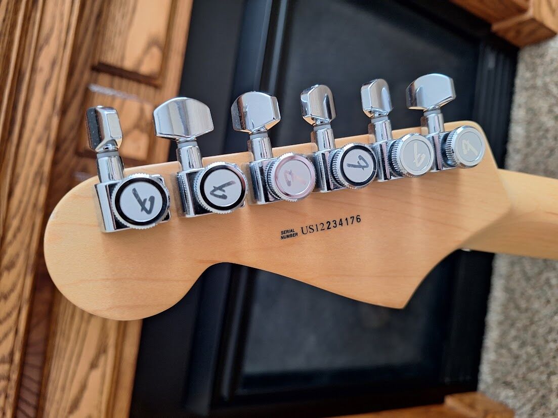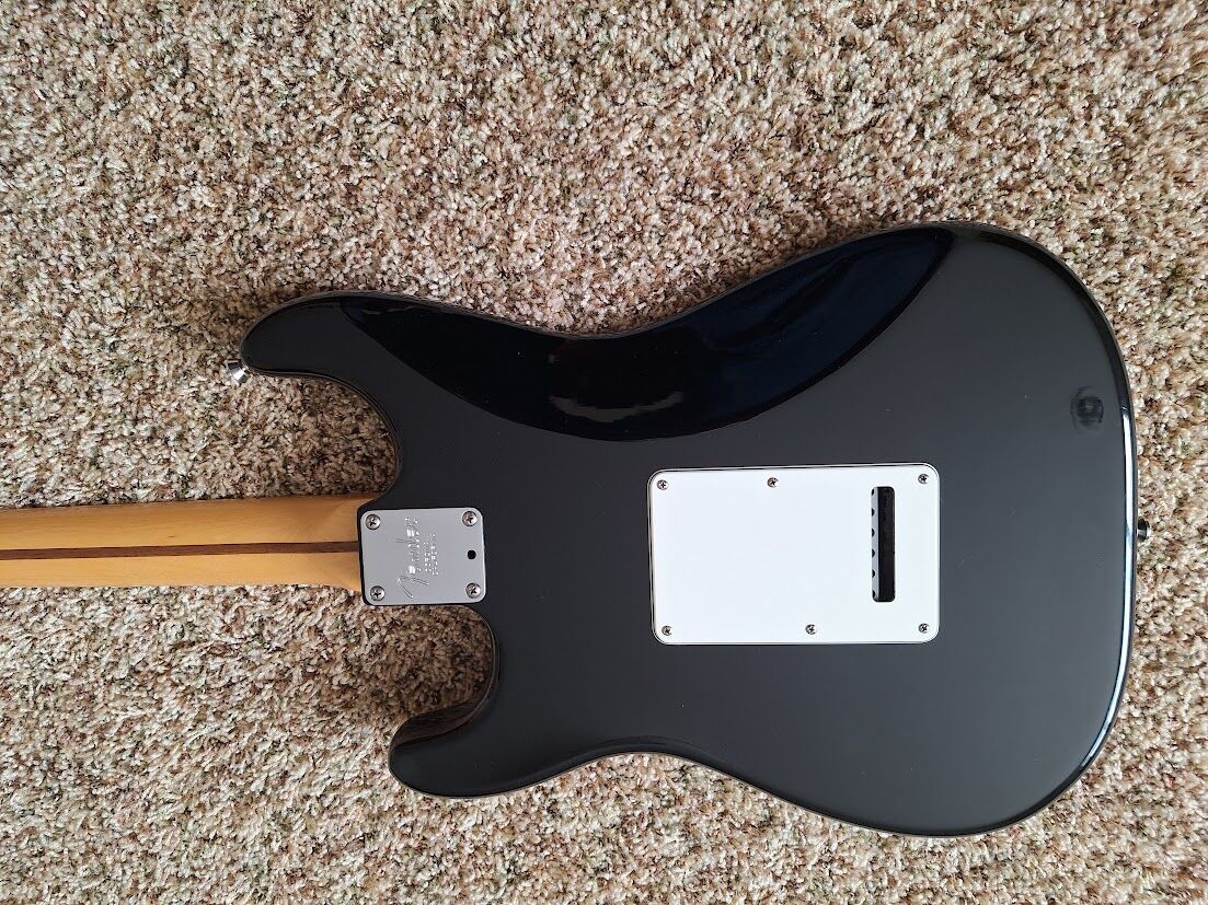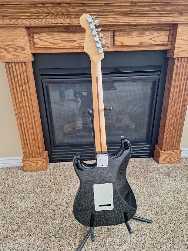 US standard strat in good plus condition. Only a small blem here or there. Neck is completely clean. Has upgraded fat 50's pickups and locking tuners. Comes with Fender hard case. I can meet up part way between Pocatello, and SLC. Would do a straight trade for tube amp such as Princeton Reverb, Mesa Boogie Fillmore, Dr Z etc. Would also consider a guitar with humbucker such as an SG. $1,050.