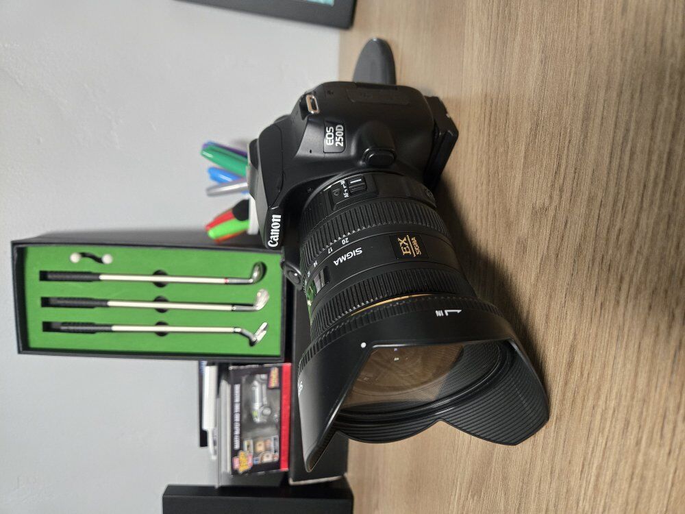VenmoCanon 250D (SL3) in great condition. Comes with neck strap, charger and battery. Selling with Sigma 10-20mm f/3.5 EX DC HSM also in great condition. Comes with both caps, lens hood, and UV filter to protect the glass. I've used this set up for real estate photography and it works amazing. Happy to share the quality of photos that this set up can take.