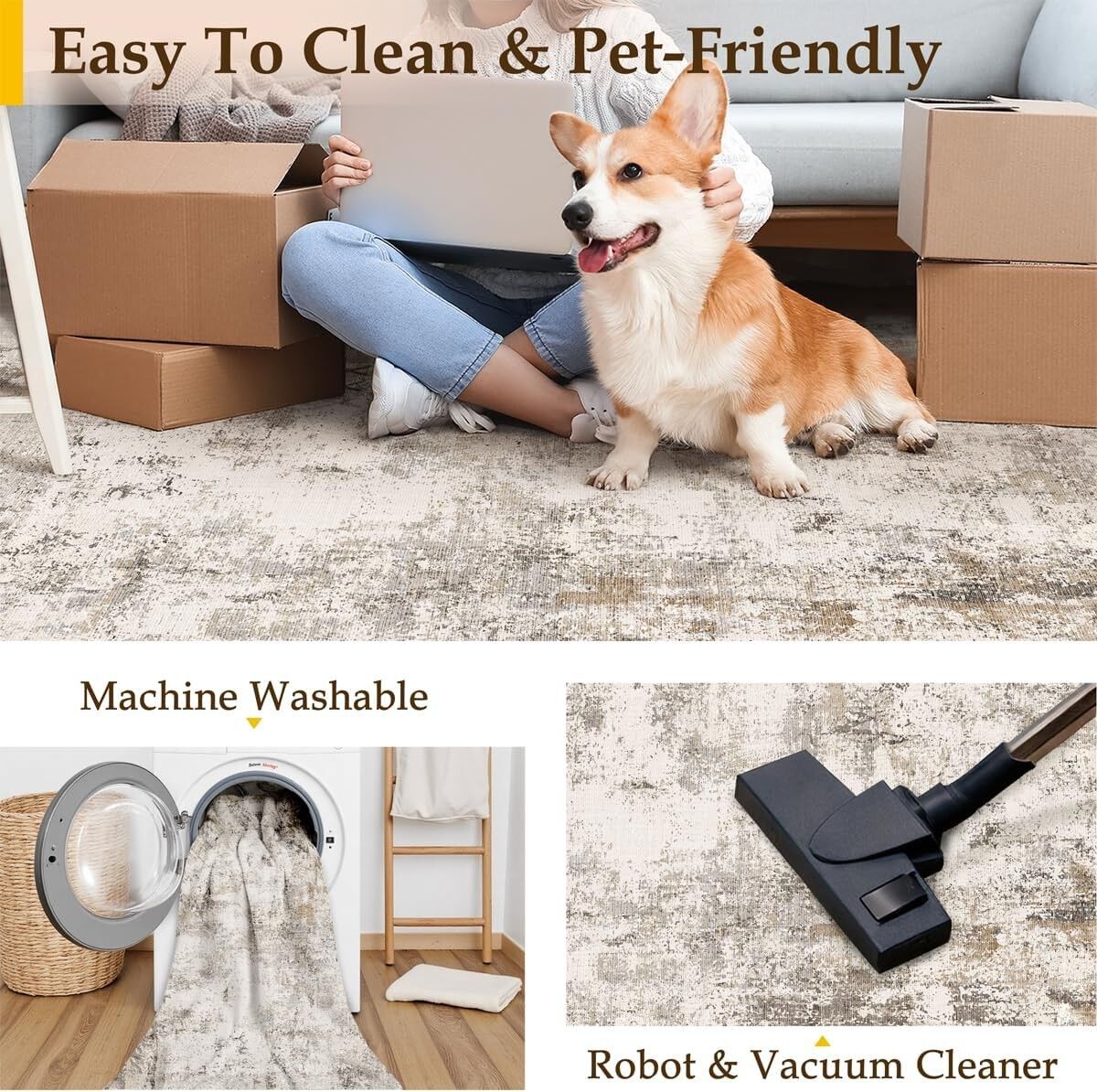 Venmo3x5 Washable Area Rug Brown Grey Abstract Entryway Office Throw Rug Neutral Modern Non-Slip Soft Low Pile Small Carpet for Kitchen Living Room Bedroom Entrance