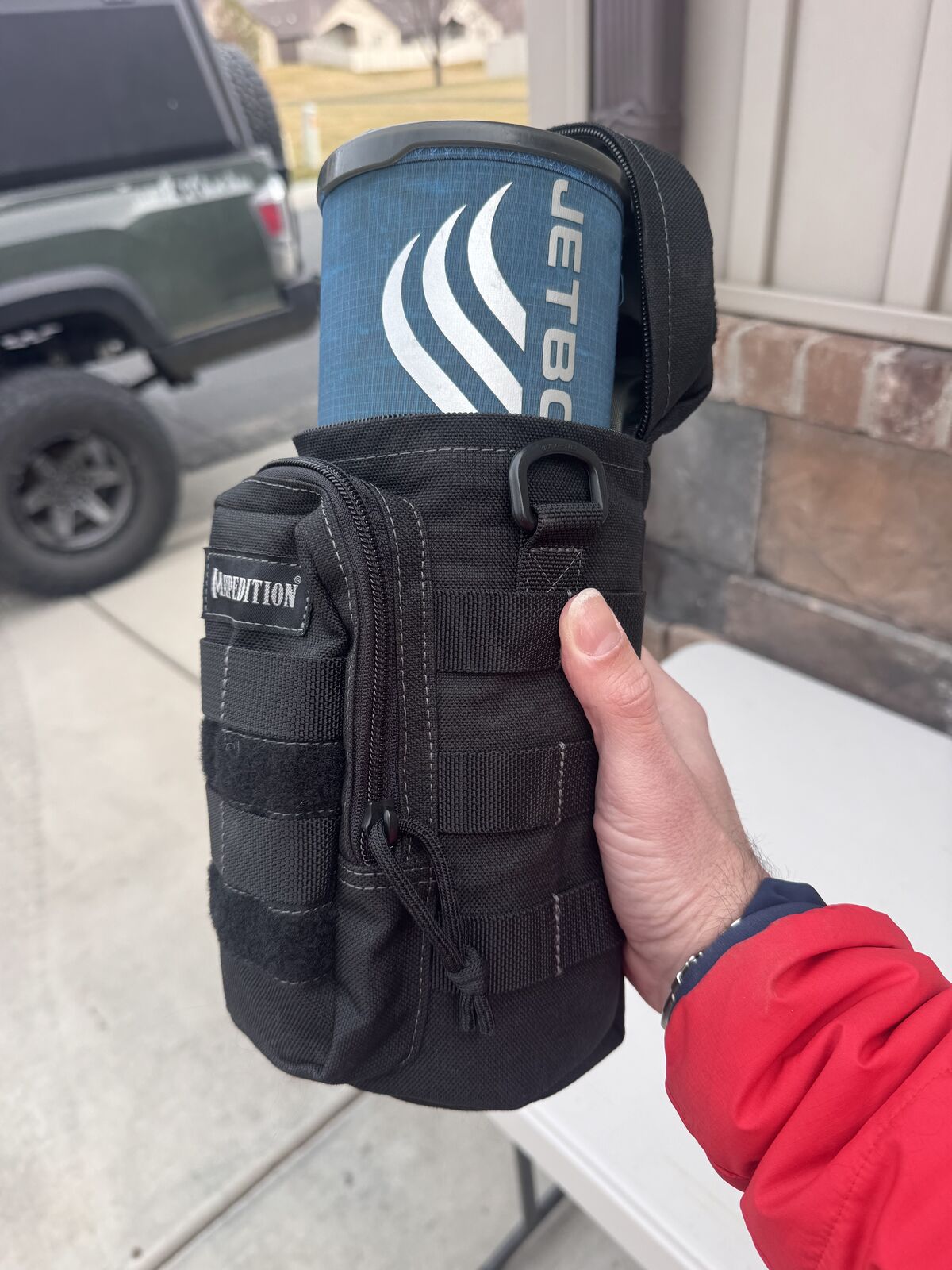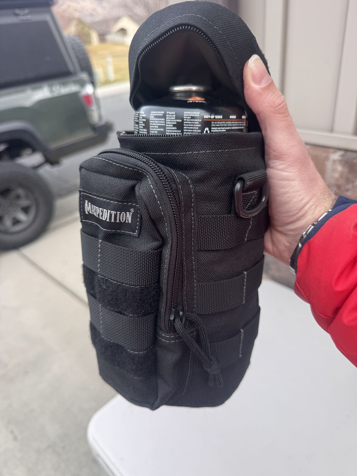 The pouch has been the ultimate Jetboil/coffee setup holder. Used to keep instanct coffee singles and sugar in the front pouch. You can even fit an extra can of propane inside the pouch with the jet boil.