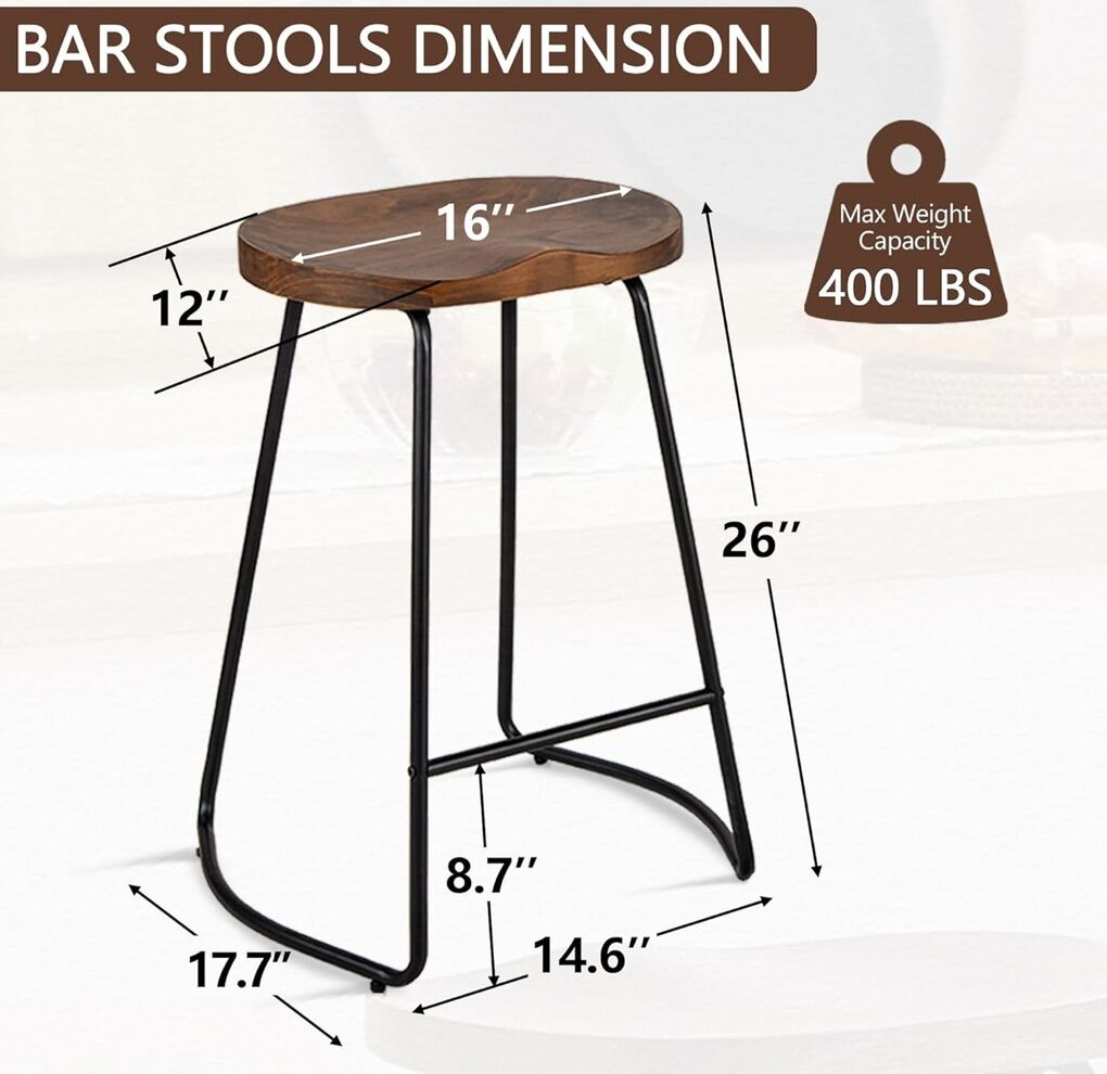 VenmoSet of 3, Solid Wood Counter Height Bar Stools 26 Inch Barstool Chair for Kitchen Island Rustic Saddle Seat Backless Stools with Metal Leg (Walnut, 3 PCS 26Inch Counter Chair. New in box.