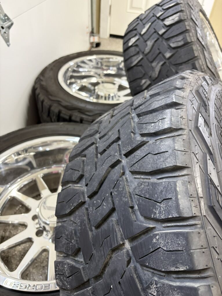 Mounted on 33x12.50R20 Toyo Open Country R/T tires • Roughly 70% tread remaining • Hybrid R/T design – great mix of aggressive off-road grip and smooth street ride • Plenty of life left, ready to bolt on and go