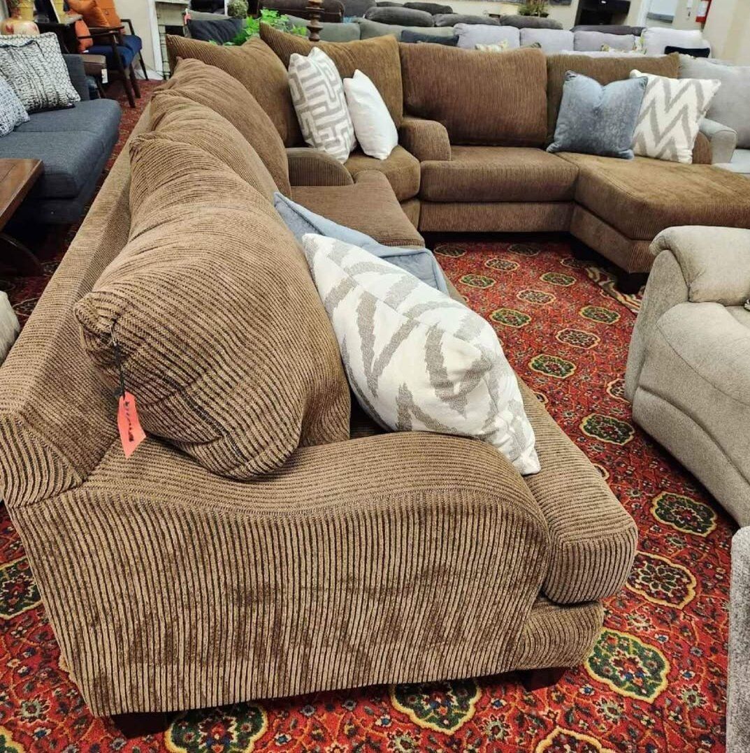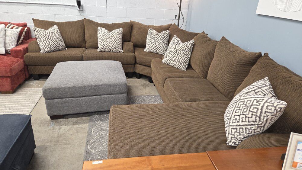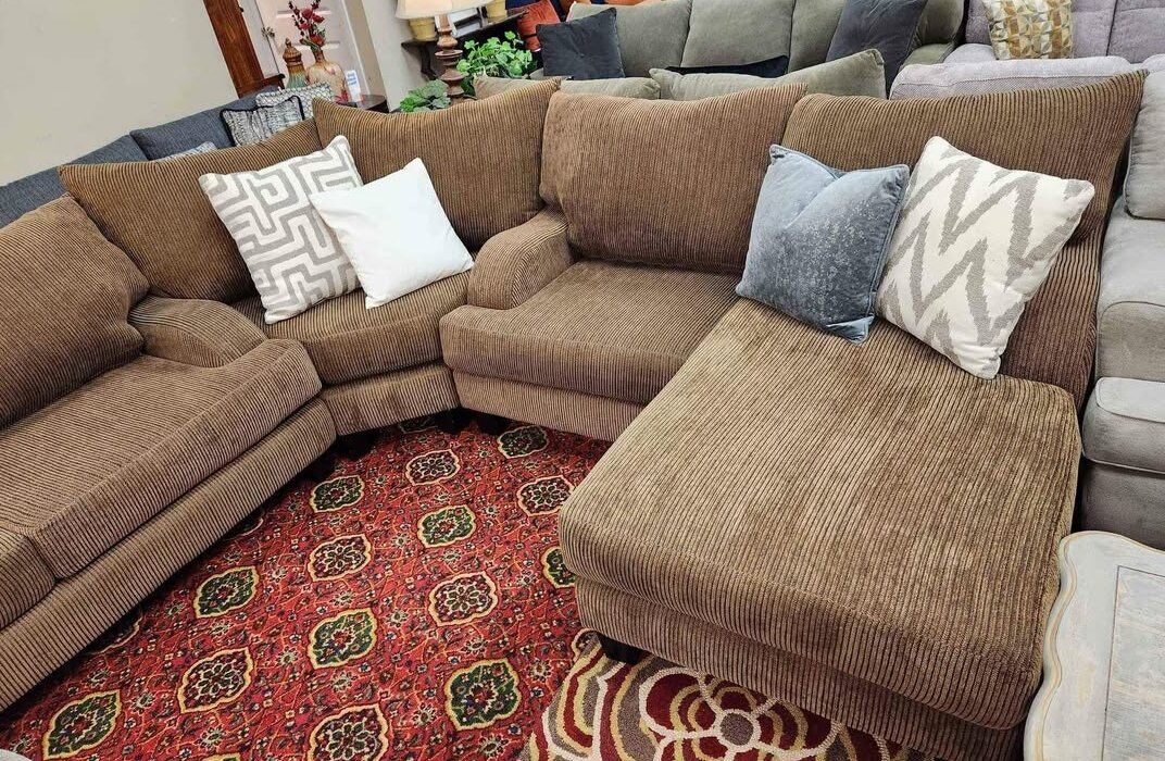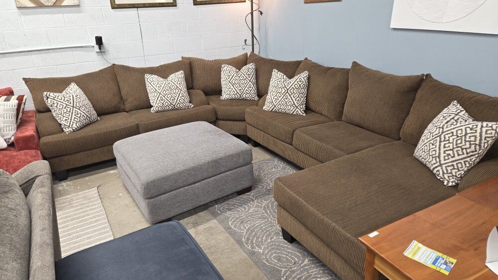 Gorgeous 3-piece sectional with large deep seats! Soft, brown corduroy fabric. Chaise/ seats are reversible, can be arranged multiple ways and used as a separate sofa and loveseat alone. Great condition, very comfortable! Located in Layton.