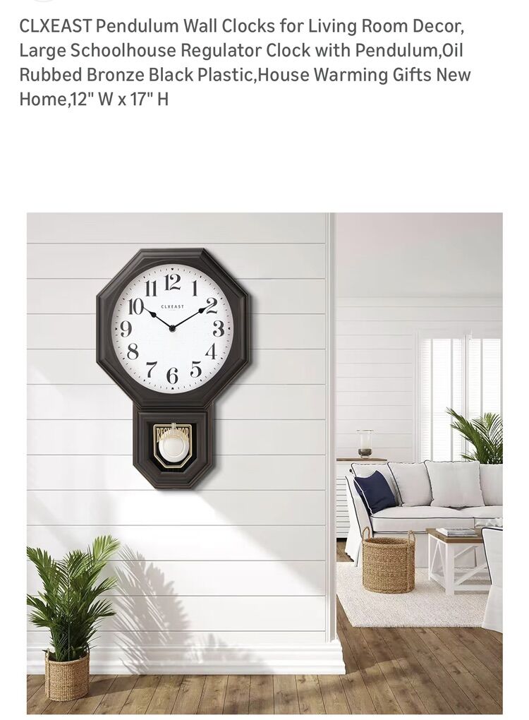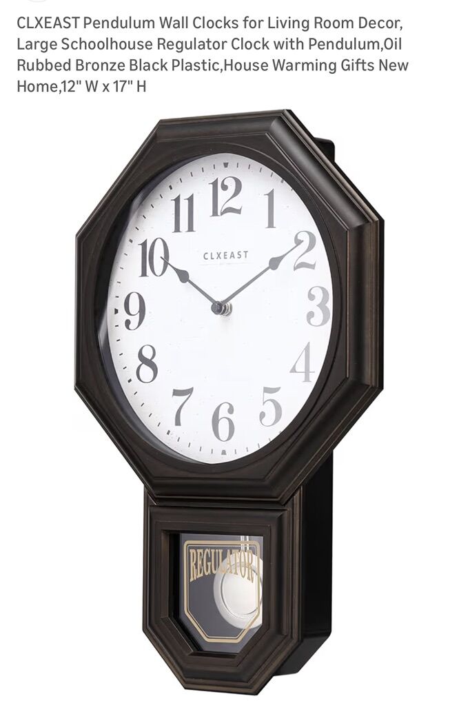 ApplePayCLXEAST Pendulum Wall Clocks for Living Room Decor, Large Schoolhouse Regulator Clock with Pendulum,Oil Rubbed Bronze Black Plastic,House Warming Gifts New Home,12 W x 17 H New in box! Original price $39.99 on Amazon!