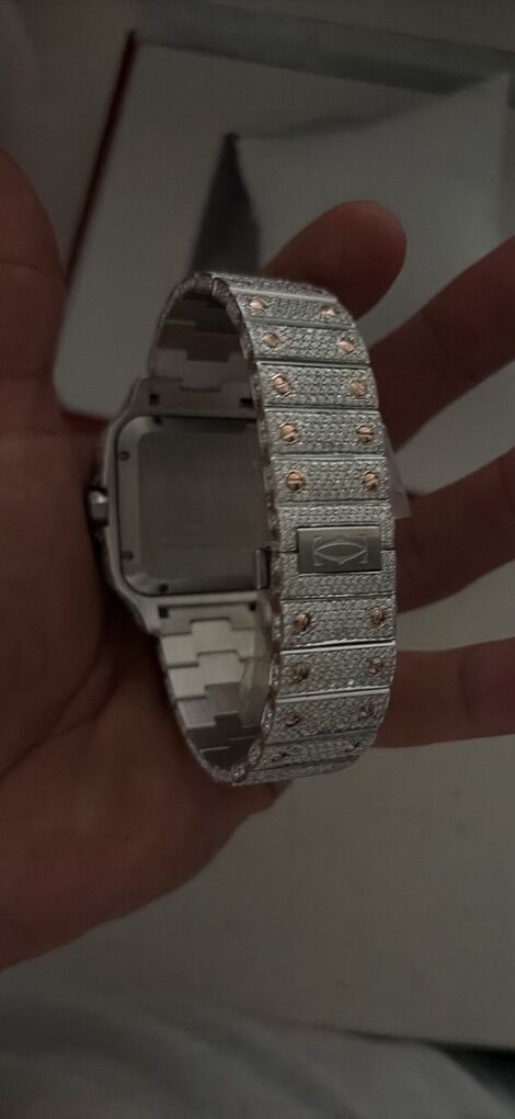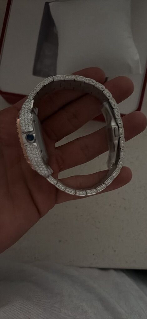 This fully flooded luxury watch is built to stand out: • Precision-set stones throughout bezel & band • Clean Arabic numeral dial • Date display • Heavy, premium feel on the wrist • Flawless shine in any lighting