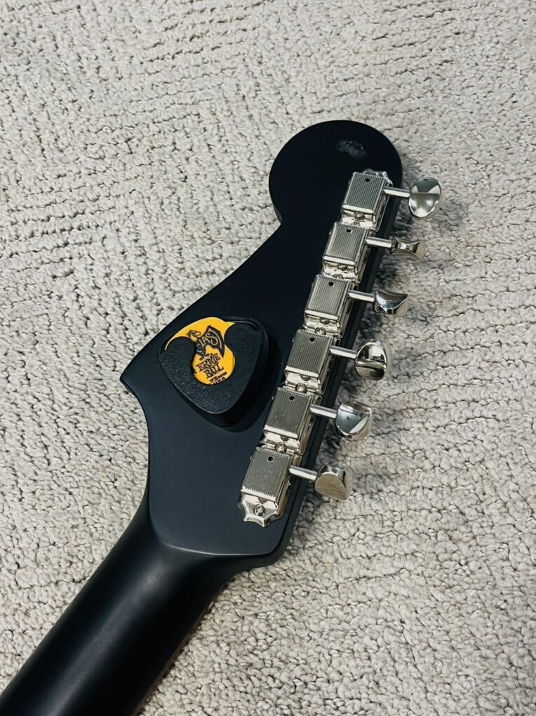 I added a pickholder to the back of the headstock but it’s removable if you don’t want it there. You can see some slight marks in the photos from stickers I just barely removed, but the guitar will be fully cleaned if you come check it out.