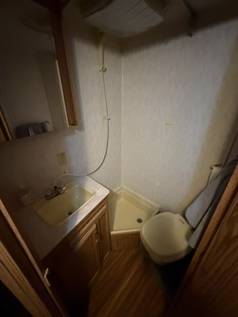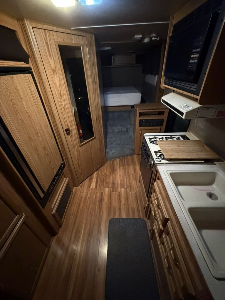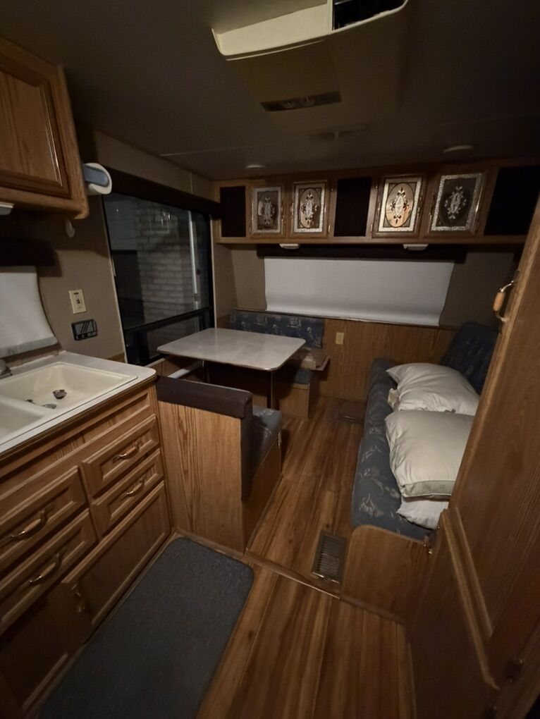 •A very comfortable trailer in really good shape •Well maintained by previous older gentleman and kept clean •Weight: Dry Weight is about 4,000lbs •Sleeps four comfortably •Kitchen: Stove, fridge, microwave, sink. •Bathroom: shower, toilet, sink •Electric AC and gas heater (propane) •Power: has Solor to maintain battery life. •awnings, flipped axels for more clearance spare tire, has hitch to tow doubles, sanitary flush for black tank •It’s in really good condition mostly original •Resealed roof as of 2 years ago there is no water damage •Is currently winterized.