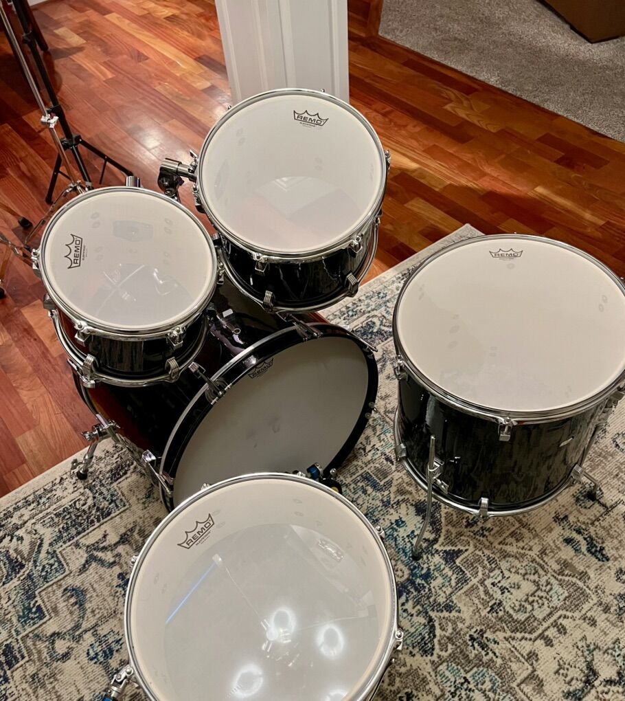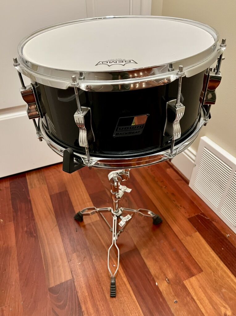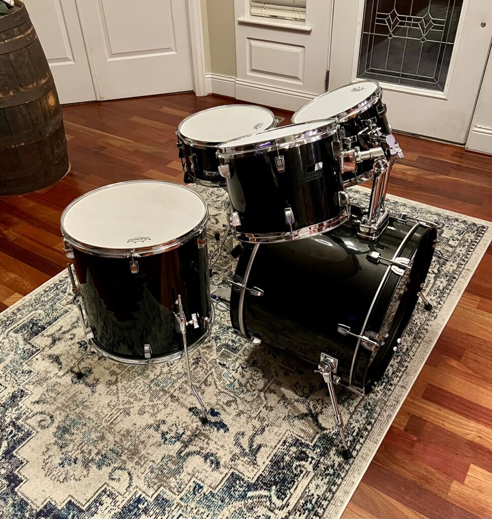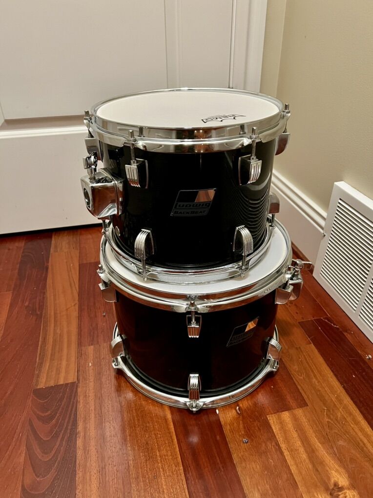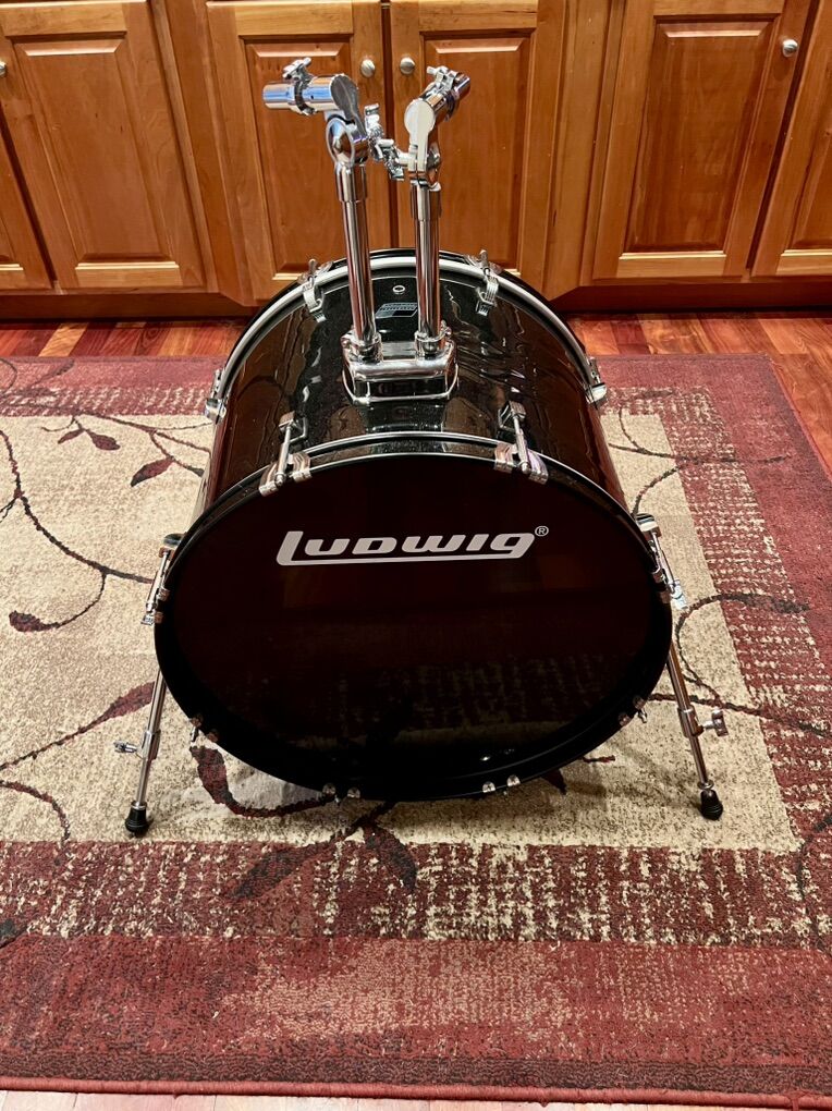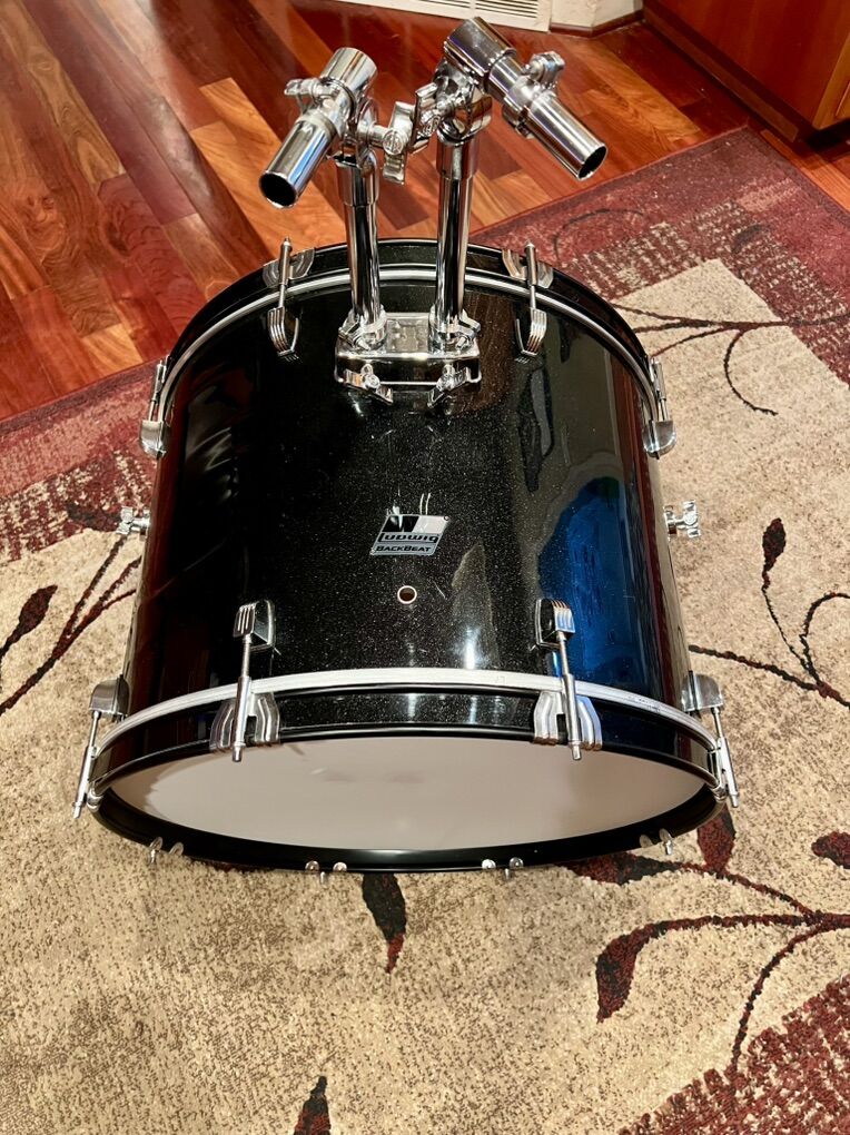 Venmo$170: Used Ludwig BackBeat 5-Piece Drum Set in Black Sparkle finish, includes •22” bass drum •10” rack tom •12” rack tom •16” floor tom •14” snare drum •Regular Drum Heads (16” new/rest used)