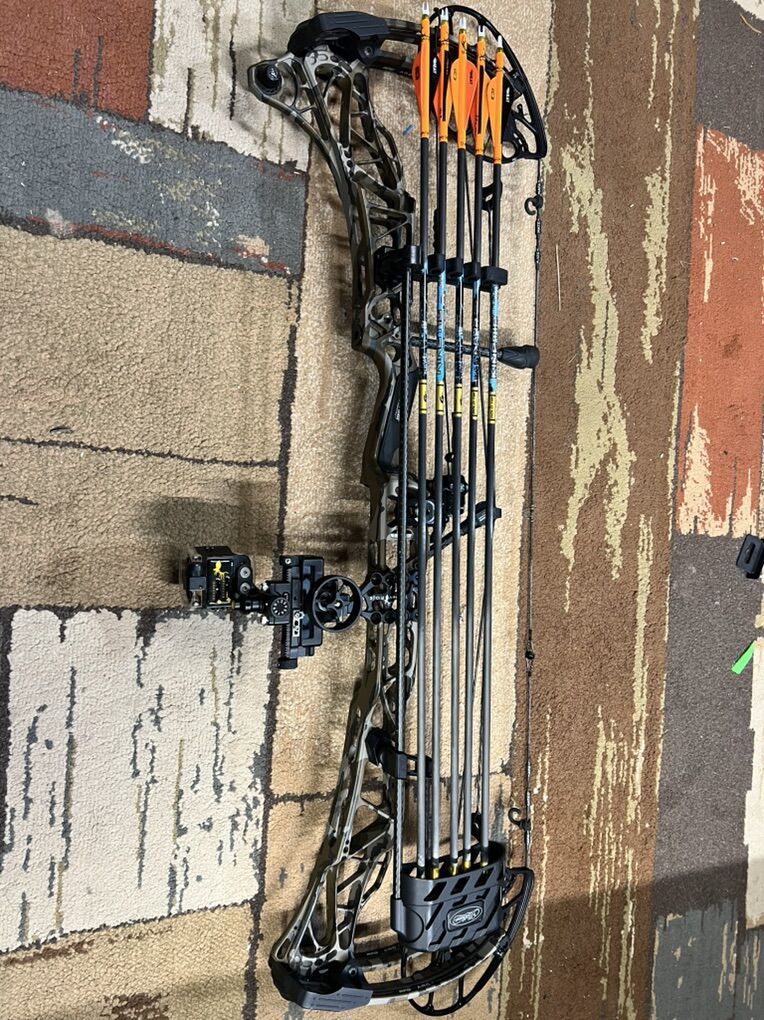 2025 Mathew’s Lift X 33 in RealTree camo pattern. In excellent condition. Never dropped or dry fired. Timed and tuned. Currently set at 70 lbs and 31 inch draw but easily adjusted at any bow shop. Includes Mathew’s integrated quiver, Trophy Ridge 3 pin slider sight and Hamskea Epsilon rest (pictured) but I can switch to a QAD Ultrarest if you prefer. I’ll even throw in a half dozen Gold tip chaos arrows (pictured)at full ask price.