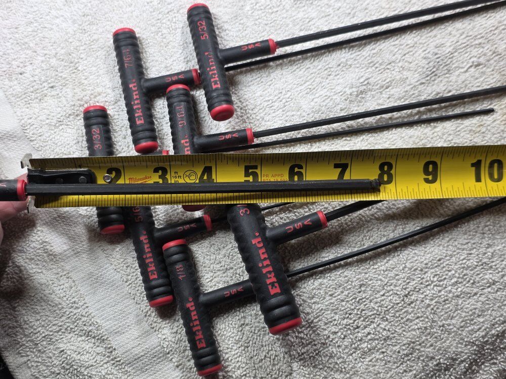 These are lightly used heavy duty USA made Eklind long blade, 8 to 9 inches, depending on where u measure. standard SAE hex ball T-handle with steel core T handles. $25 firm price, cash only. text Steve 8017082825
