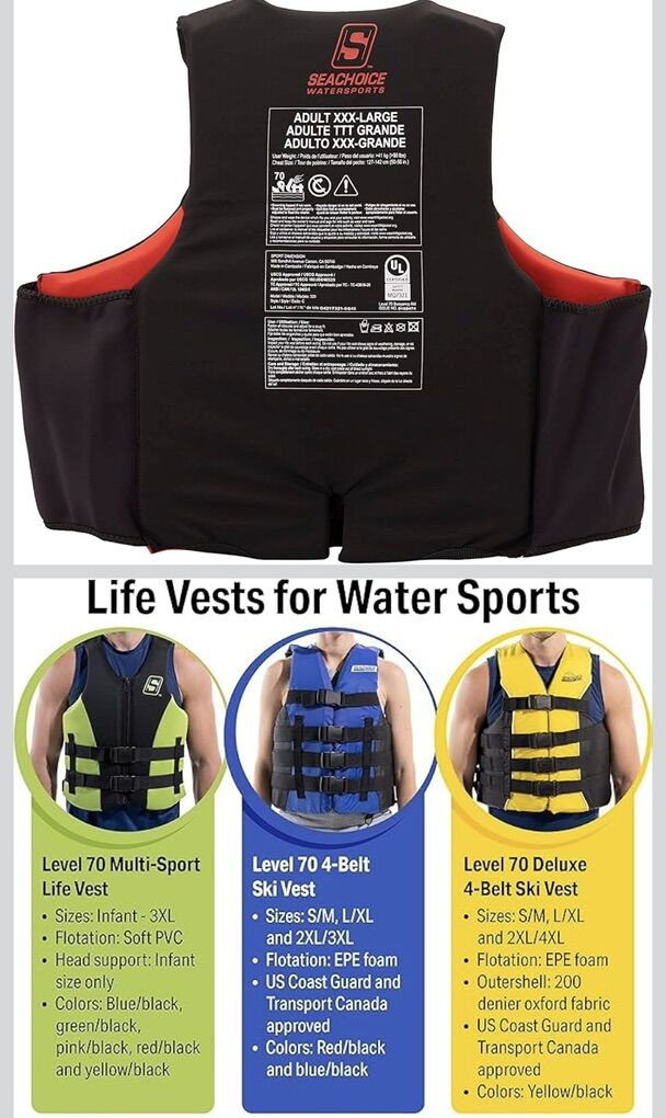 Seachoice Evoprene Multi-Sport Life Jacket, USCG Level 70, Sizes Child to Adult BRAND NEW!!!