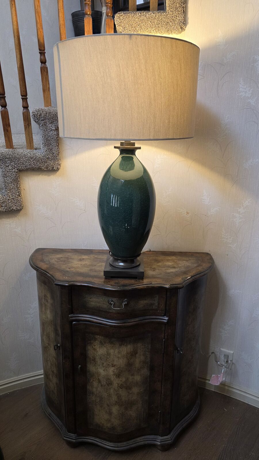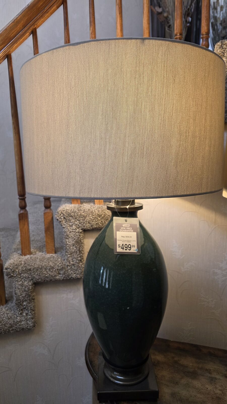 • Glossy dark‑green ceramic base with a rounded, vase‑like silhouette