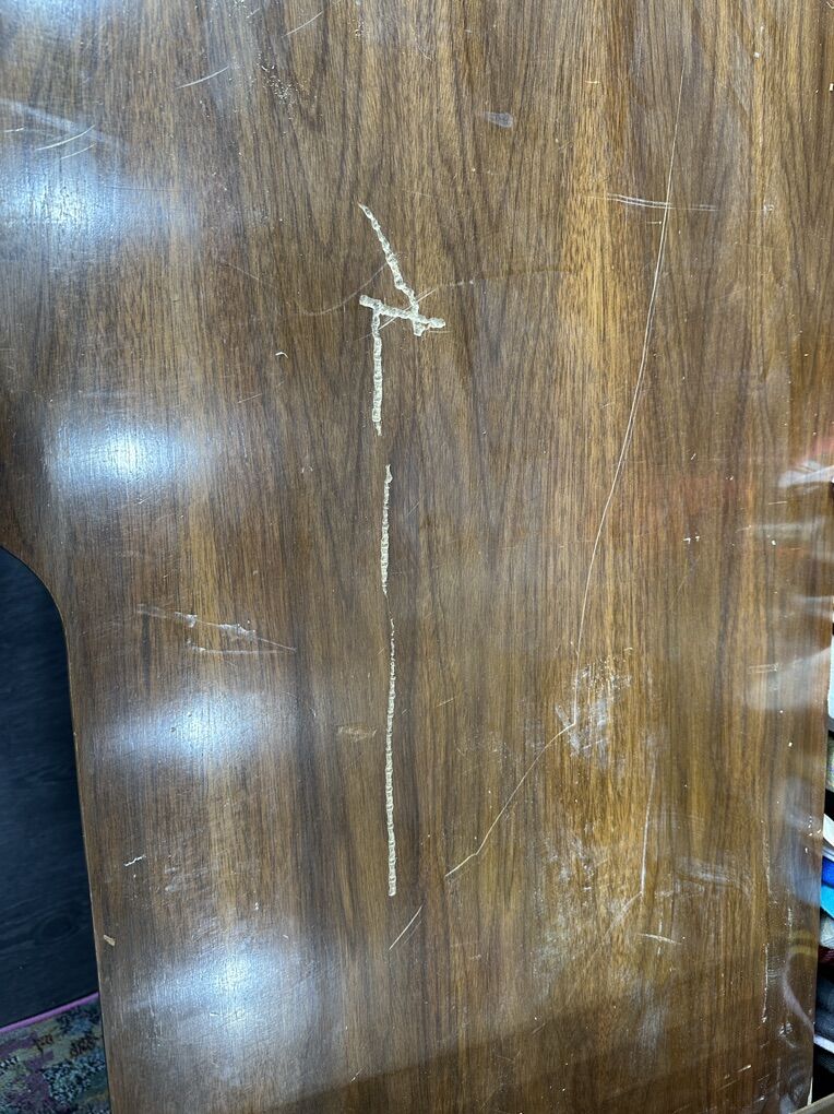 2pc MCM china cabinet buffet. Drawers work fine. There’s a scratch at the top of the bottom (shown in picture) the scratch is not visible with the top of the hutch on you can’t see it. Located in hyde park just outside of Logan